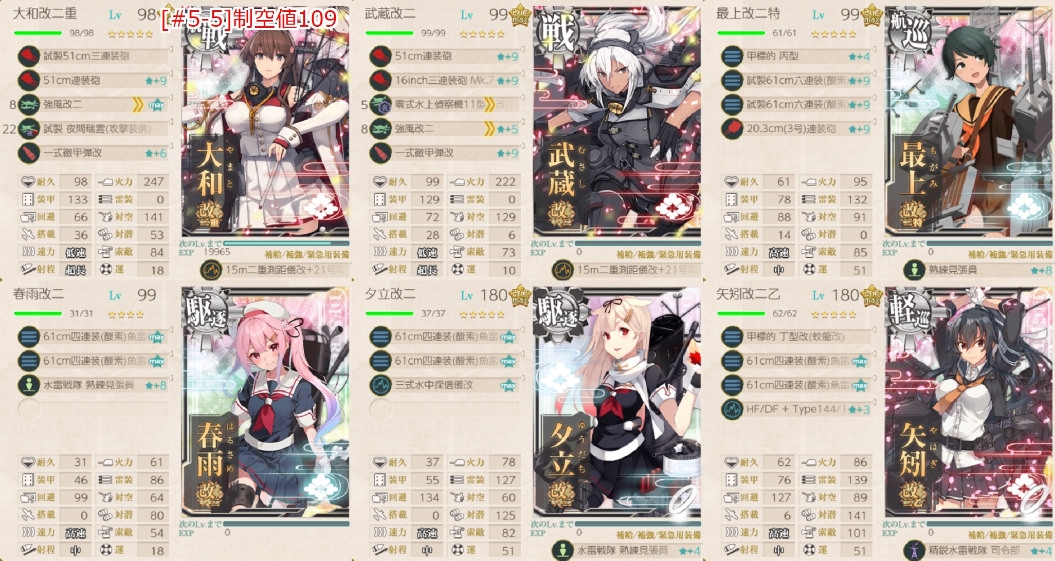 [#5-3]とか[#5-5]とか難しい海域が指定されてますが旗艦指定はないので何とか。