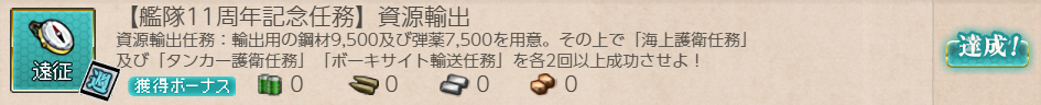 報酬:【艦隊11周年記念任務】資源輸出