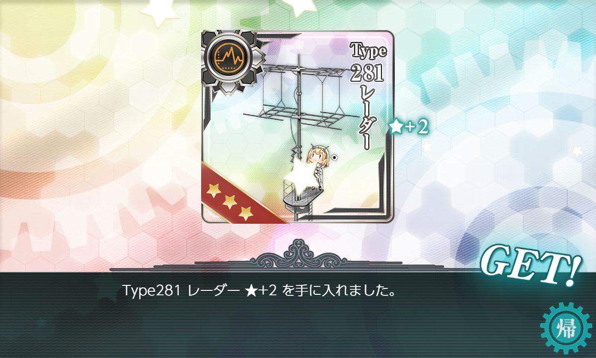 ただキラ付けが取れるとJマスで何故かjohnstonワンパン大破するので、キラが取れるたびに1-5で付け直し。そのせいで時間はかかりましたが大きな事故もなくクリアー、自分の場合丁字不利のほうがLマス横編成が多くボスも安定したので不思議です。逆に丁字有利になるとボスが当ててくるので夜戦深雪まで行きギリギリ撃墜でした。