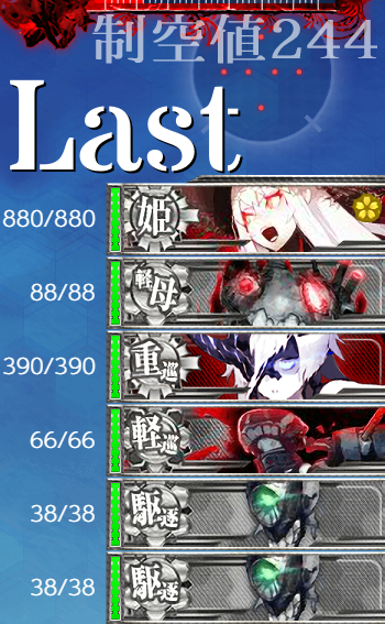 道中ソ級が怖かったため対潜支援を入れたのですが、うまくハマり事故はなし。キラ付けを怠らなければ警戒陣で回避出来ましたので道中撤退は1回もなしでした。1点修正するならJervisはボス戦で大半空母夏姫Ⅱに狙われると中破大破が多かったため対潜特化でもよかったように思います。