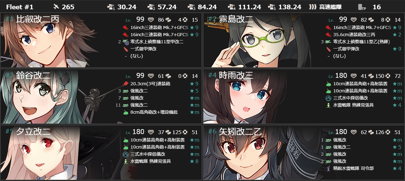 今月消化するかは置いといて『拡張「六水戦」、最前線へ!』編成。
