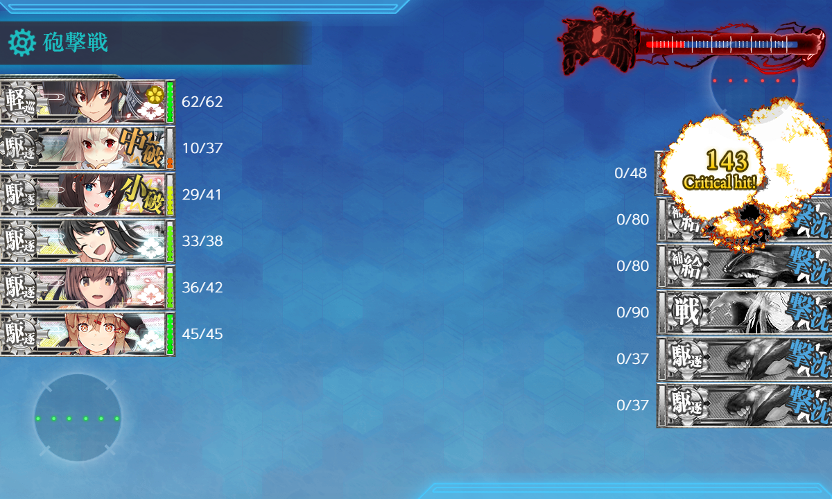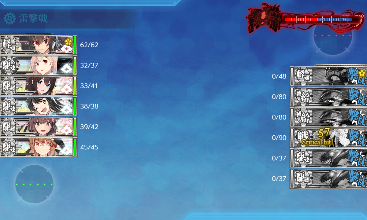 雪風が3damage受けだだけの実質完全勝利 旗艦は矢矧が落として最後は雷撃戦。
