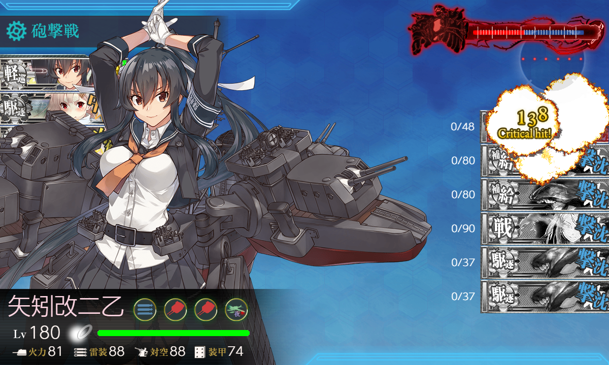 夕立が中破しちゃいましたがそれ以外の被弾はなしの昼戦END 最後は矢矧。