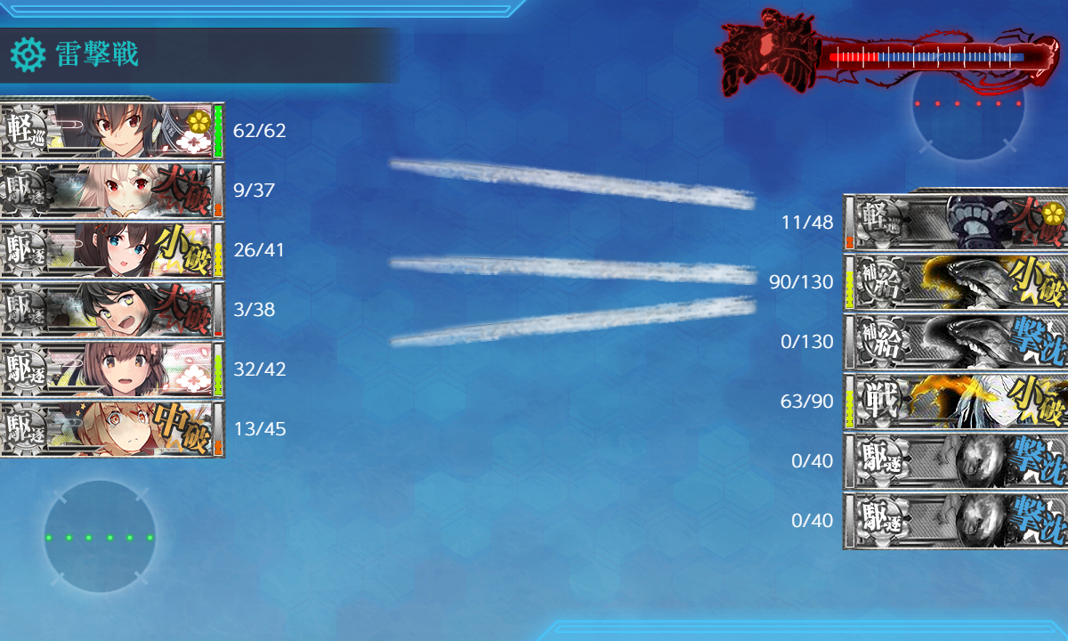 夕立と長波が大破しちゃいましたが旗艦は昼戦で落とせたので良し 最後は雷撃戦。