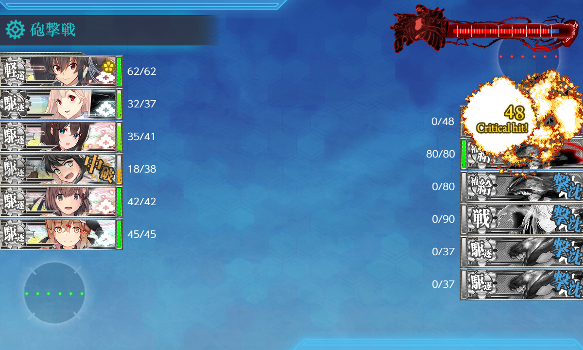 相手の攻撃は全て避けて完全勝利 旗艦は時雨が落として最後は矢矧。