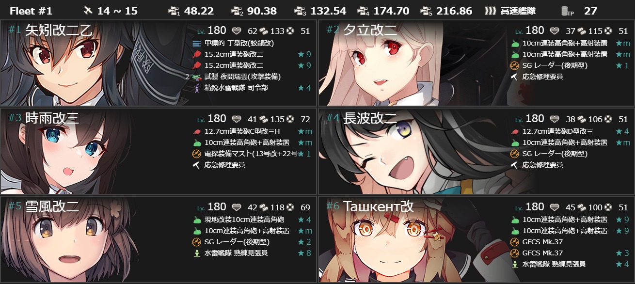 練度が高い方が良いのかなと指輪艦を優先して編成してますけど「初月」とかそれこそ実装されたばかりの「Mogador」とかその辺りを編成した方が安定するんでしょうか。今度シミュレーターで試してみようかな?