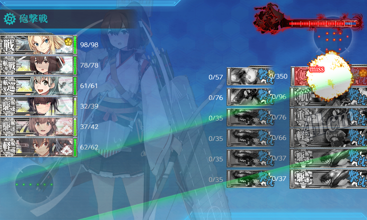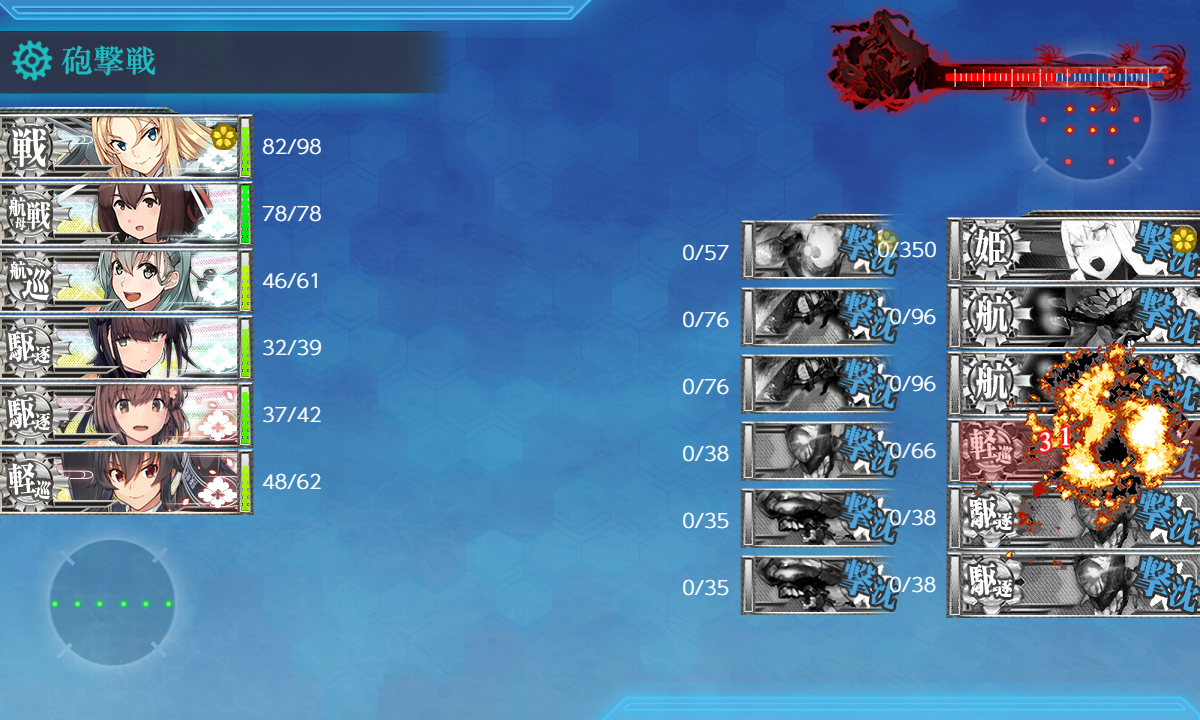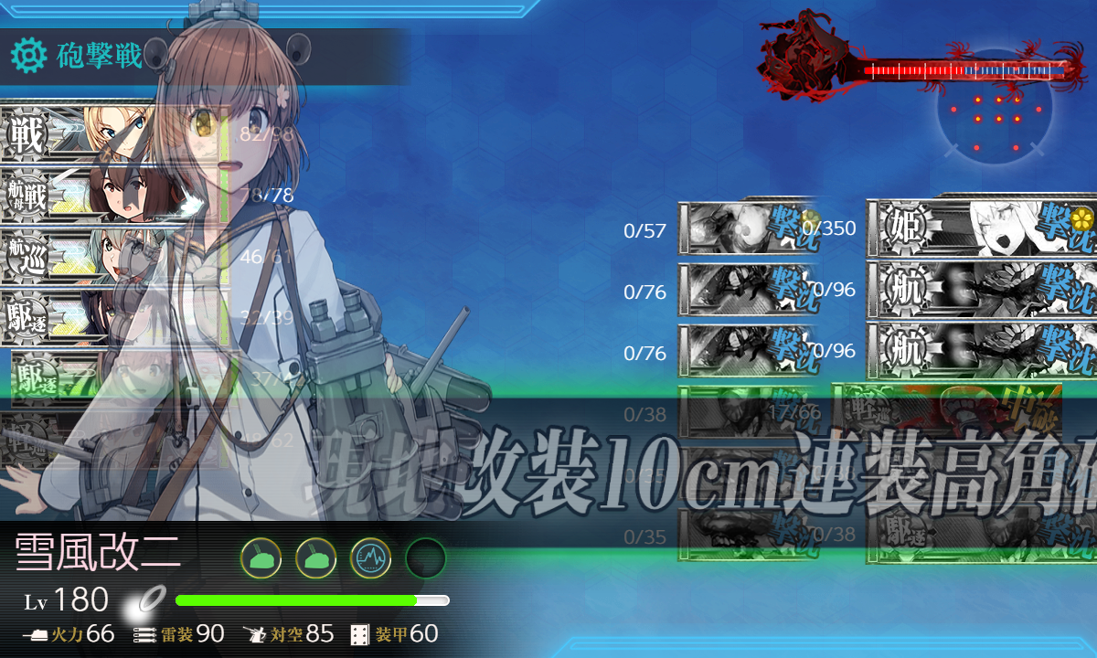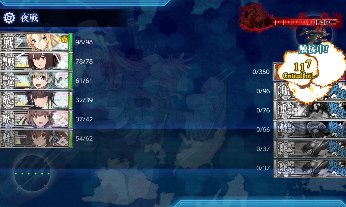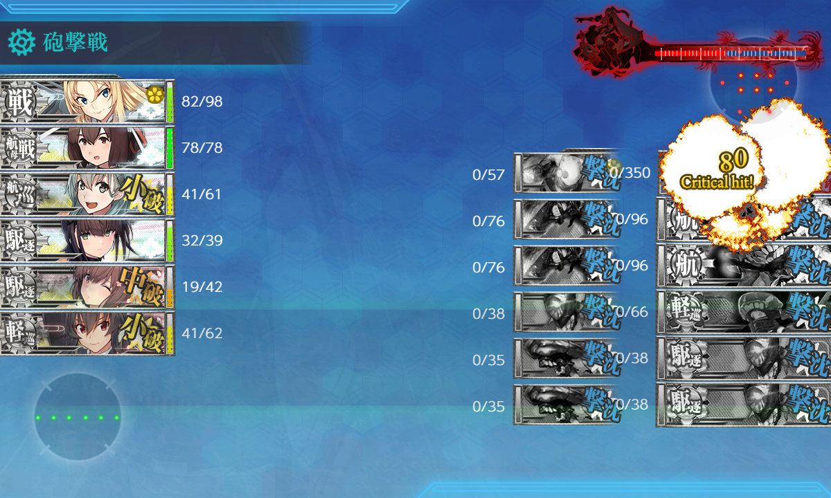 上√編成だと高確率でボス戦の"空母"が沈黙してましたが下√でも「初月」にするだけでこんなに沈黙させられるとは。