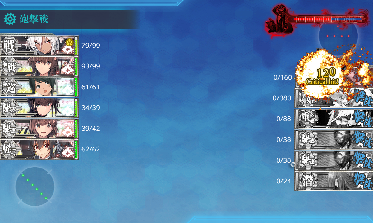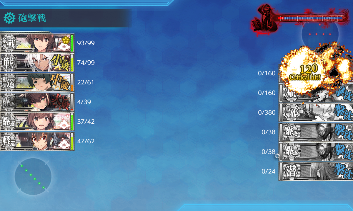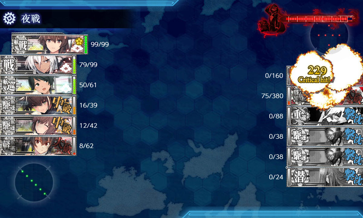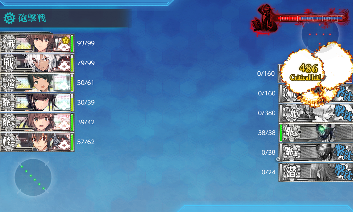 ボス(eliteレ級なし) T字有利 航空戦で初月大破