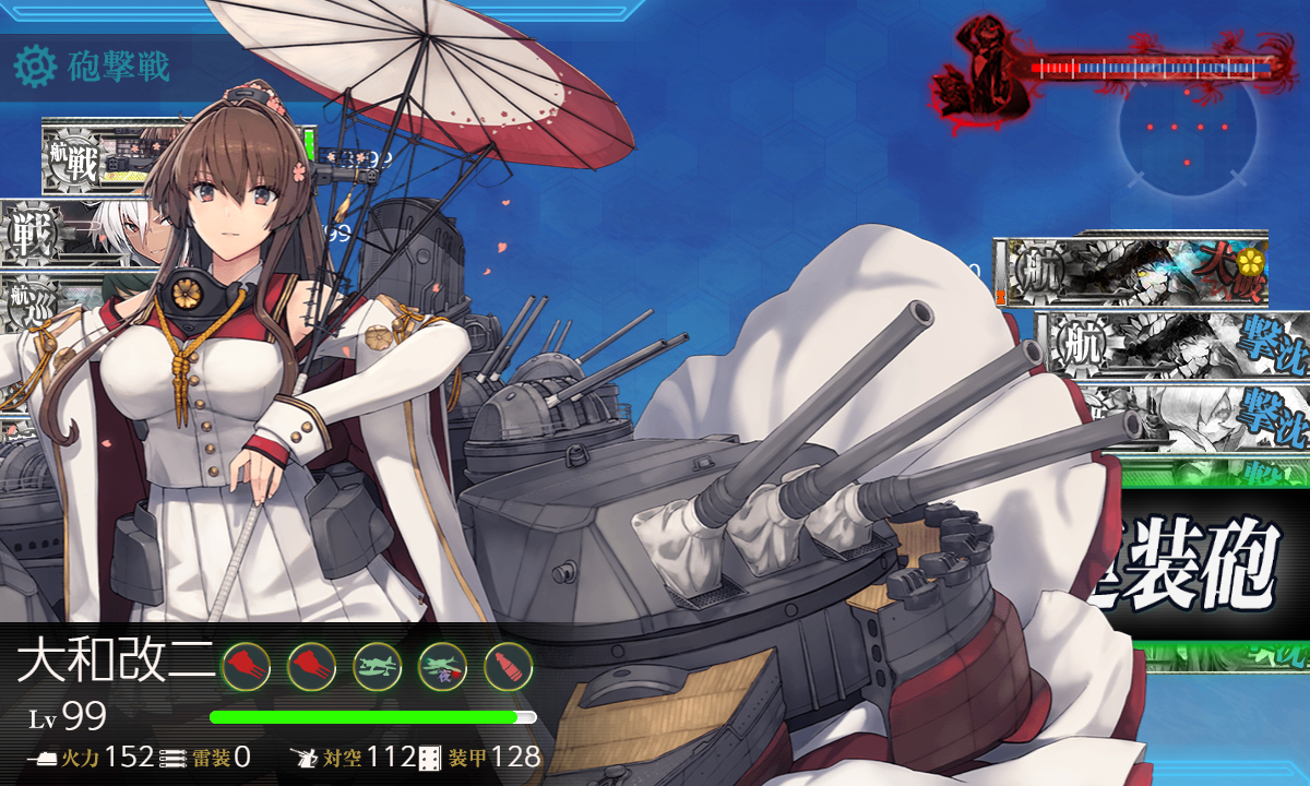今回はちょっと被弾しちゃいましたがレ級なしなら問題なし 最後は大和。