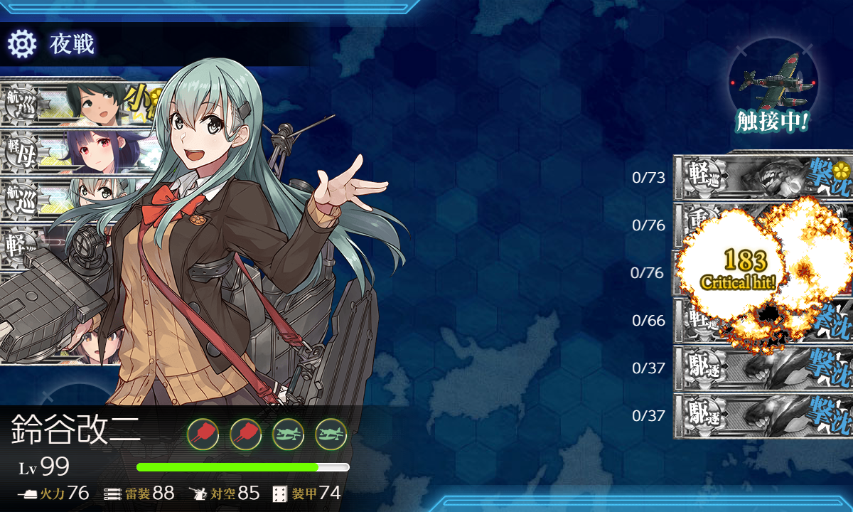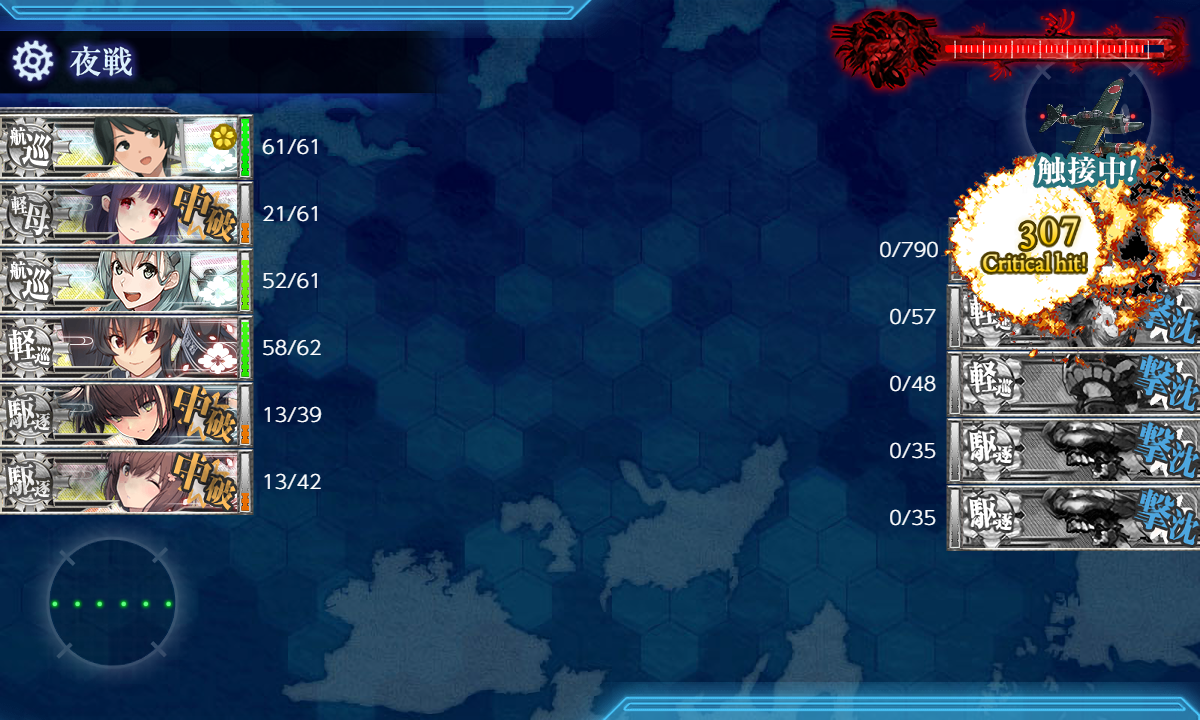 反航戦なのもありますがこっちの火力が通らず昼戦ENDならず 夜戦で最後は鈴谷。