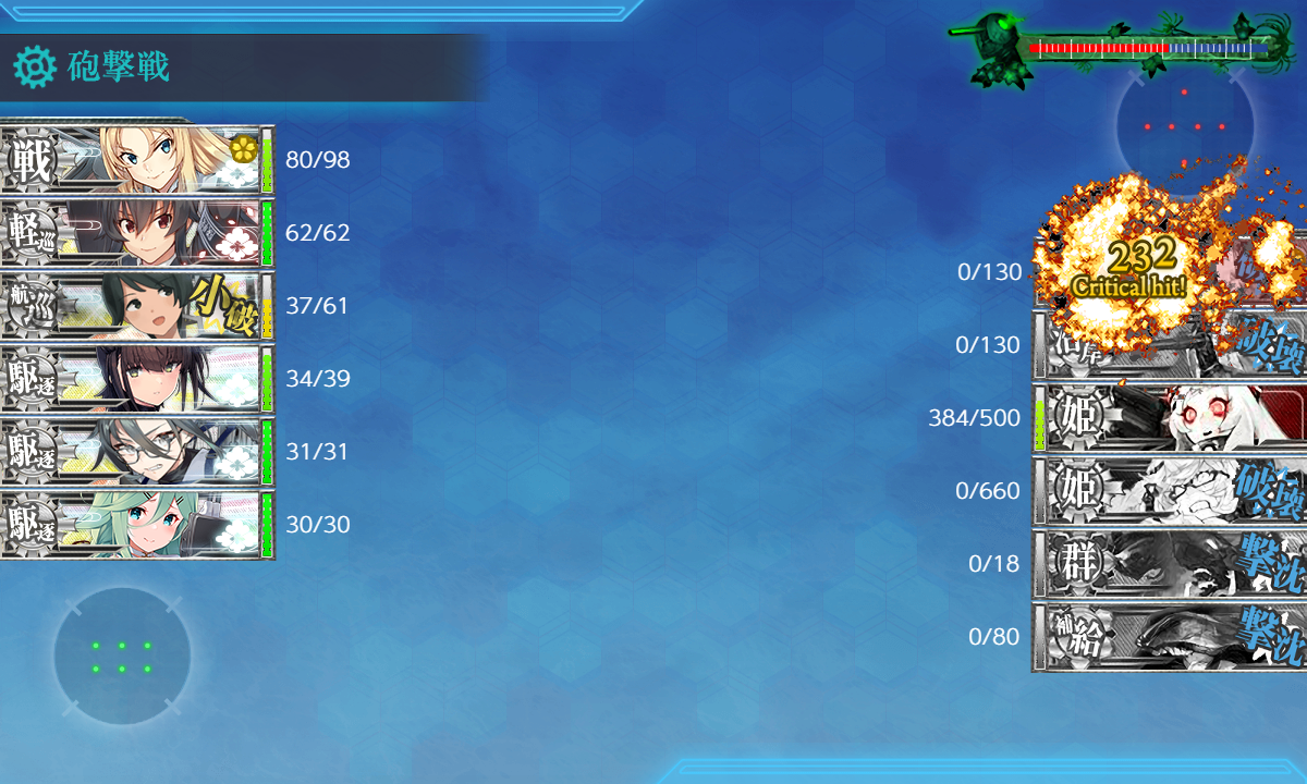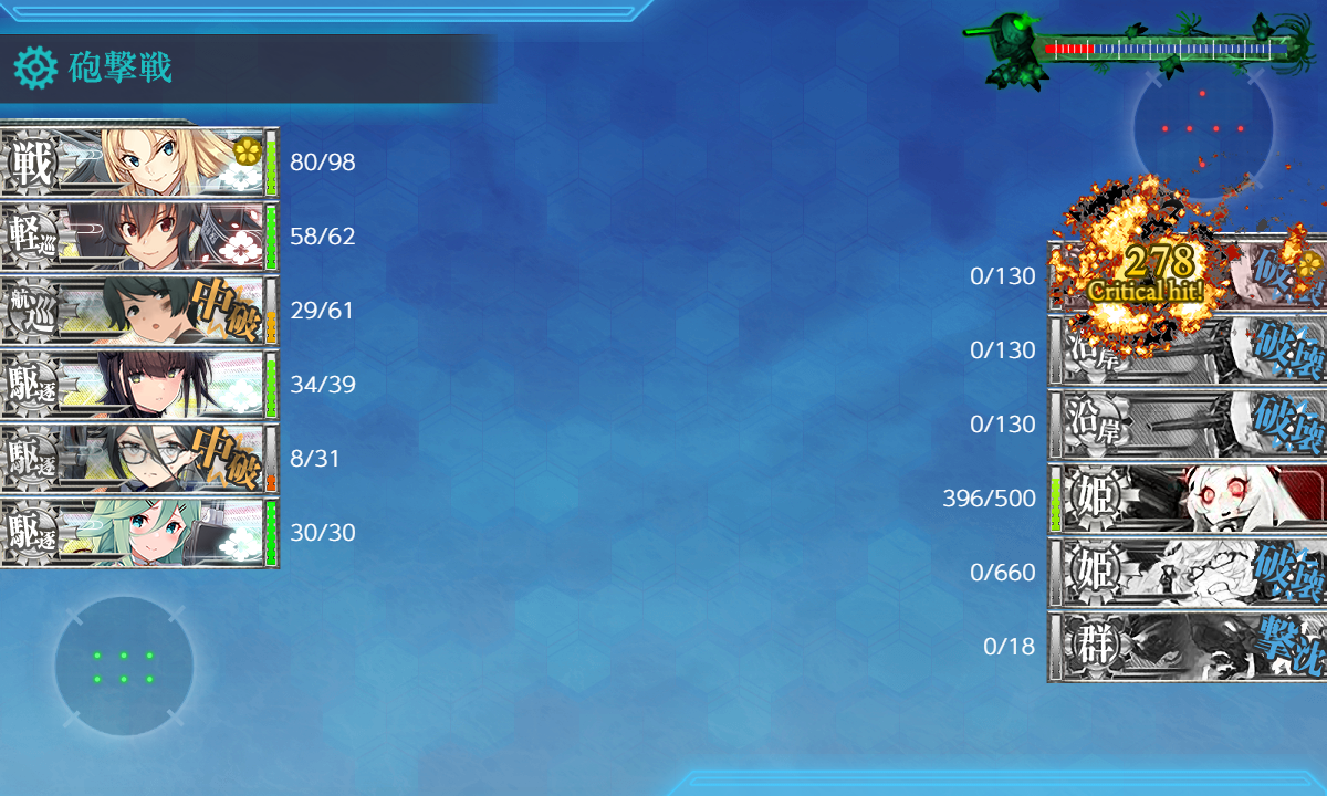 ゲージ① 出撃2回目(最上矢矧,初月小破)ゲージ破壊2回目