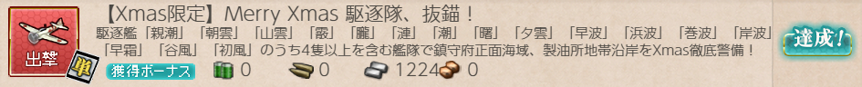 【Xmas任務】1個目。序盤海域指定ですが各3回必要なので出撃回数が嵩むのと[#1-1]の羅針盤が強敵。