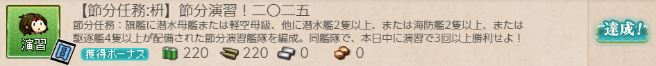 まずは【節分】演習任務。デイリー任務なのでこれからしばらくしっかり意識しないと。