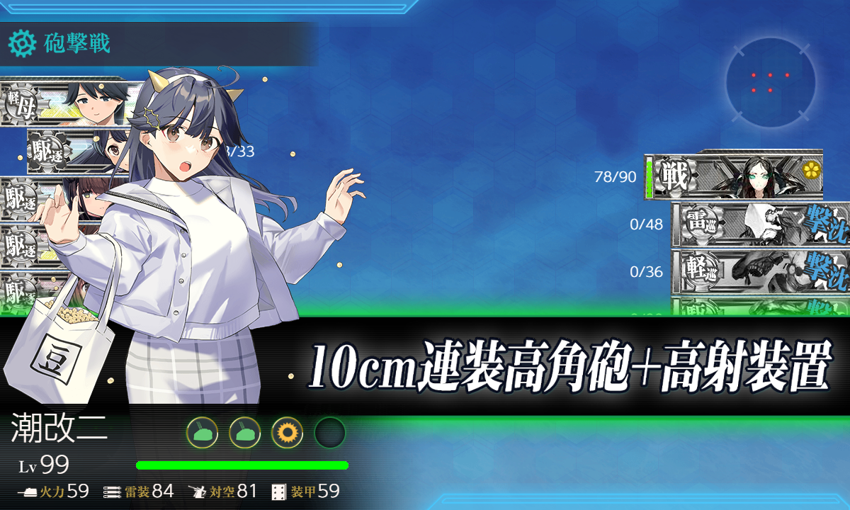[#1-1]では2人編成にしてボス到達率を上げたり[#1-3]では"軽巡"とか"軽母"を足してもok。