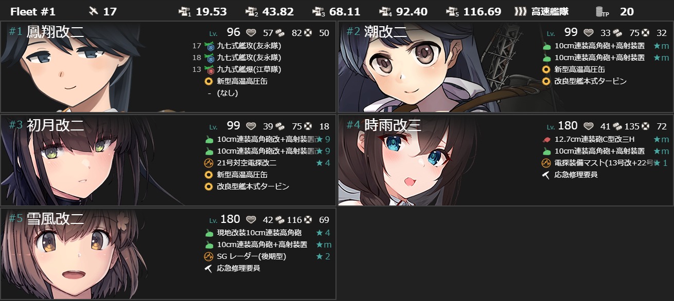 あと[#1-1]は赤疲労でも問題ない海域なので最後にして試行回数でごり押すと吉(・◇・)