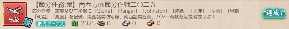 報酬:【節分任務:鬼】南西方面節分作戦二〇二五