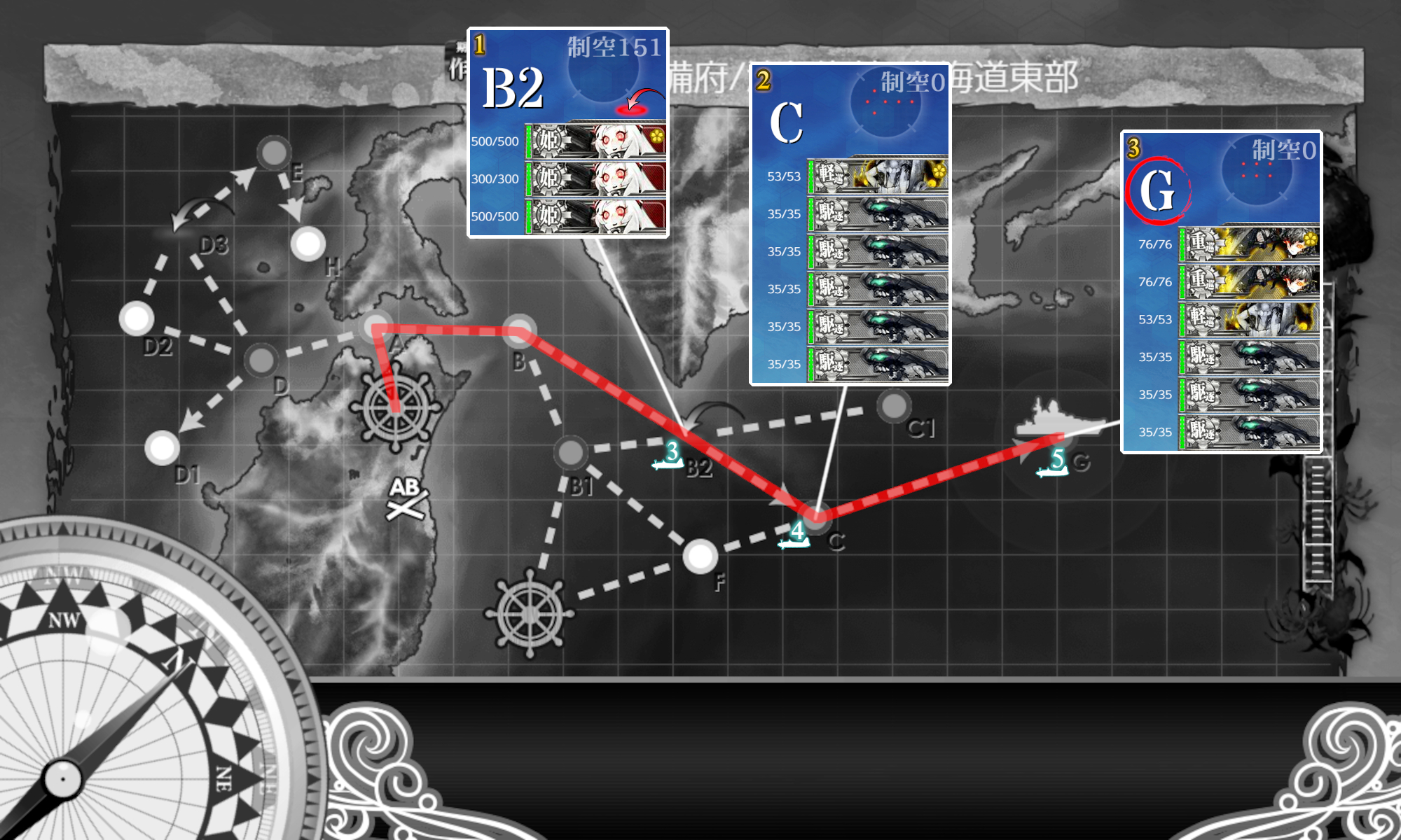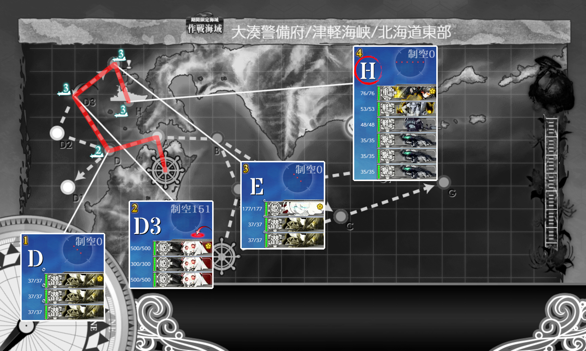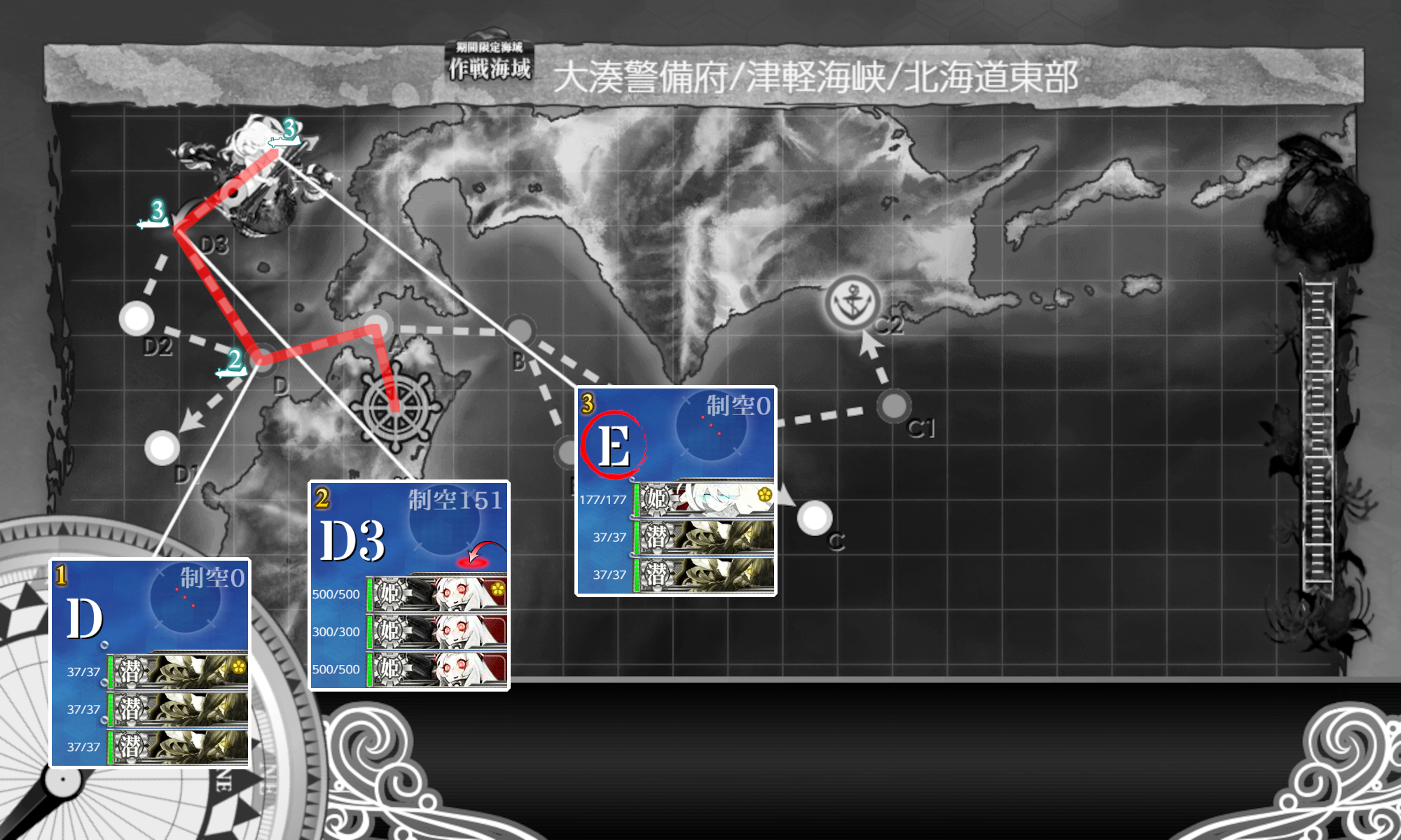 で出撃したところ、DからD3ではなくDからD2を経由するルートになりました。