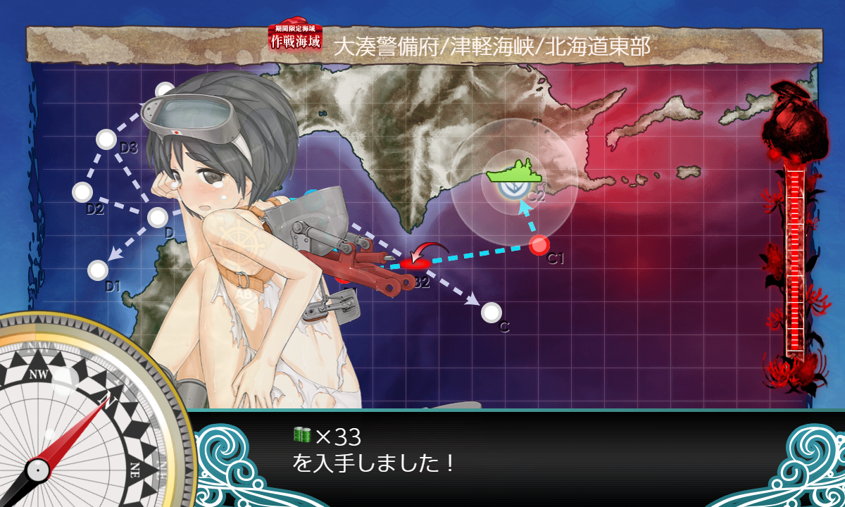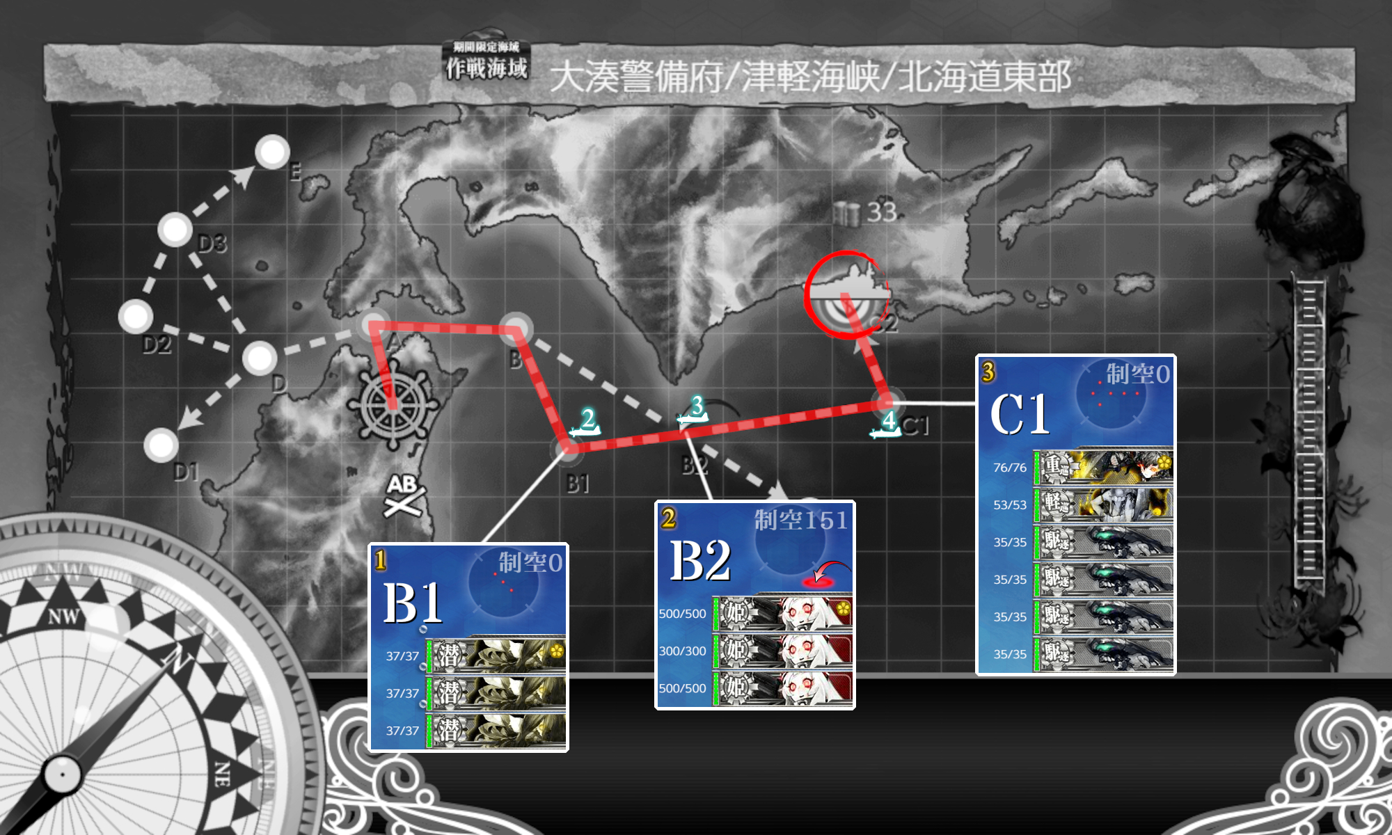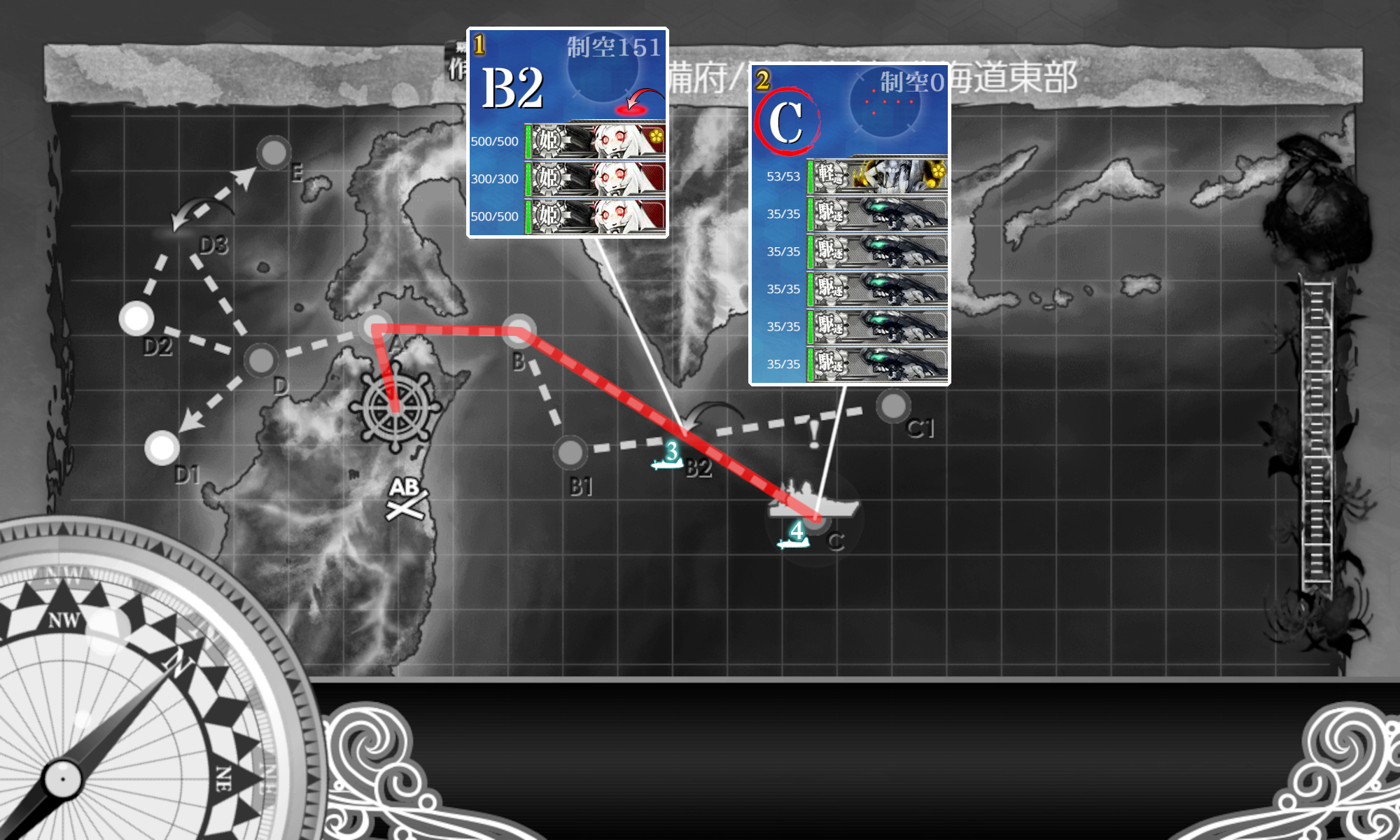 で出撃したところ、DからD3ではなくDからD2を経由するルートになりました。
