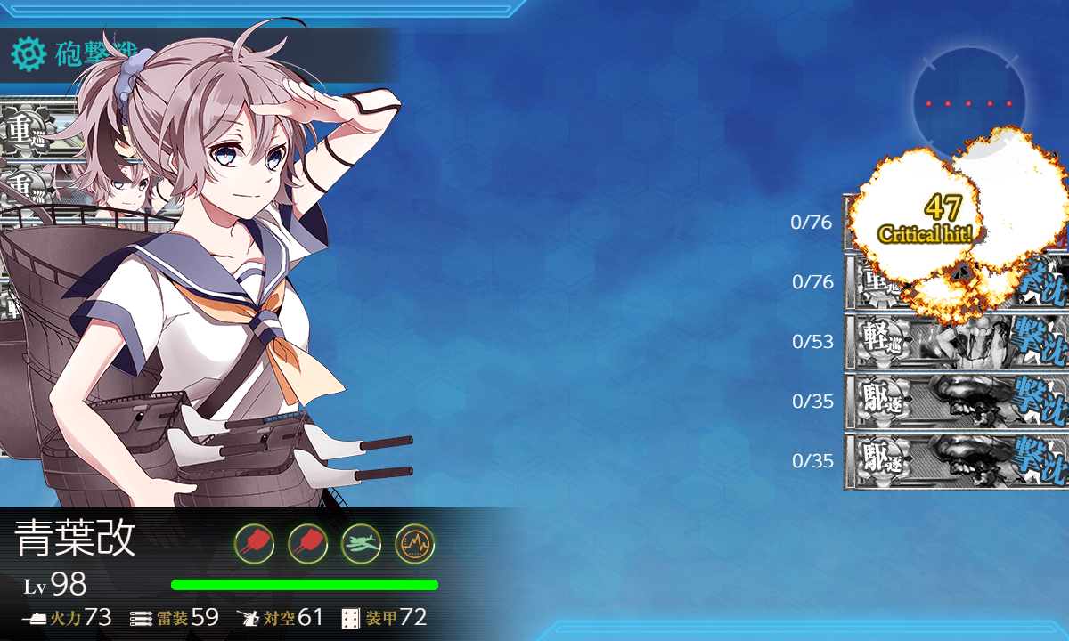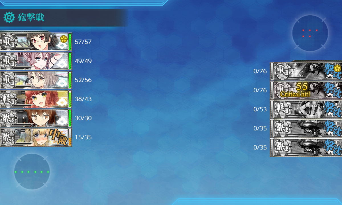 防空艦はできればいれたい。私は何度か撤退しました。それと何かしら制空は取ったほうが良いかもしれません。軽空母を入れている方もいたような気がしますがここは重巡(航巡)の役目かな?後段次第なのでもう少し待つのが無難でしょうか。