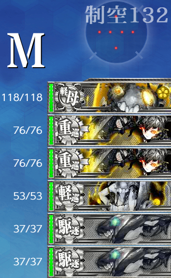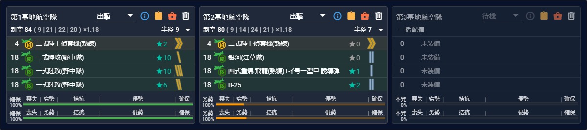第二航空隊は[M,R]マスに分散でも良いかなと思いましたが[R]マスには"ト級"がいるのでやめておきました。