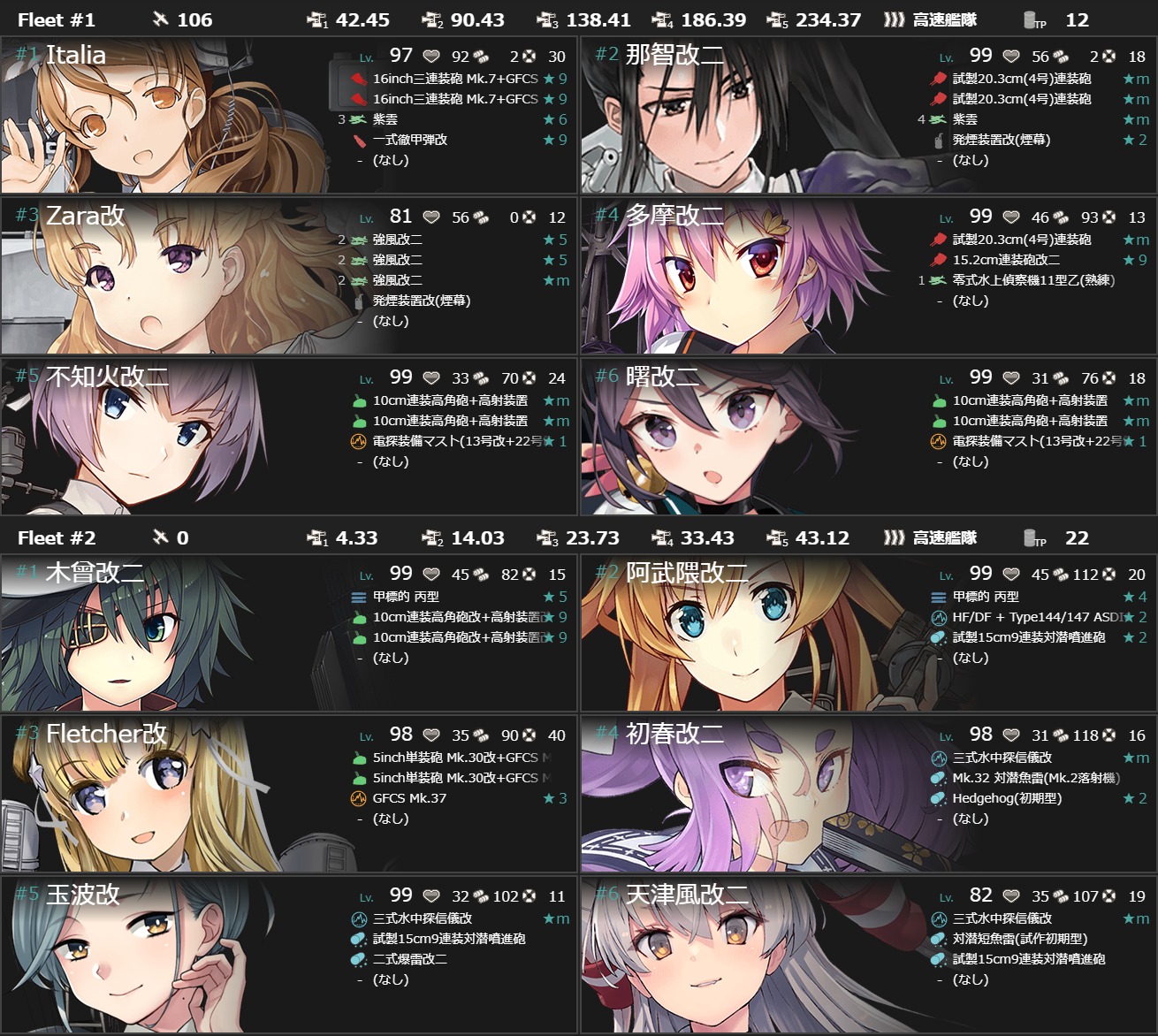 そんな感じで最終形態でも同航戦↑を引ければ装甲破砕なしでもいけるかなという感じですが道中の特にボス前(V)がかなりきついので到達率が問題になってきますし確実に攻略したい場合は装甲破砕をした方が無難かなと思います(。・Д・)ゞ
