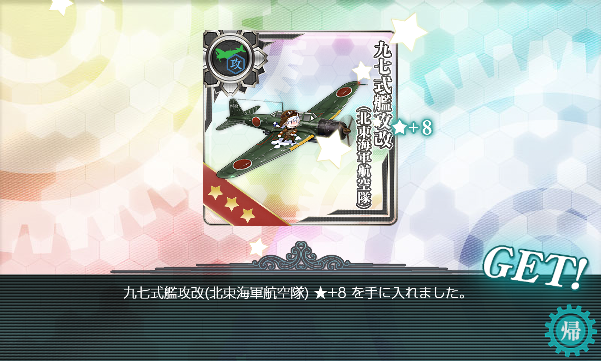 攻略は装甲破砕なしで同行以上ひくのをまって攻略。気球つれたワ級が二隻いるので航空攻撃はまったく期待できずラスダンでも道中に振ってました。ラスダン2回目でうまいことボス集中攻撃し突破できたのでまぁスムーズといえるでしょう。