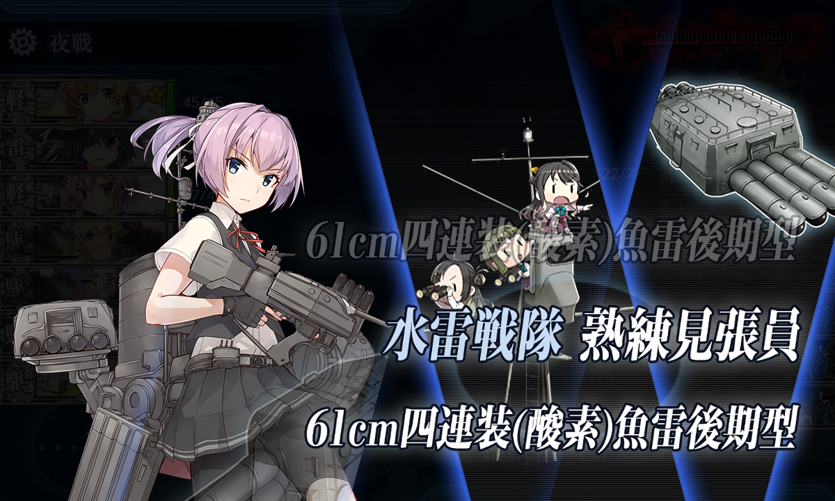 昼戦である程度削って史実艦の魚雷CIが刺さるか、夜戦で2人分の魚雷CIが刺されば撃破出来る印象。