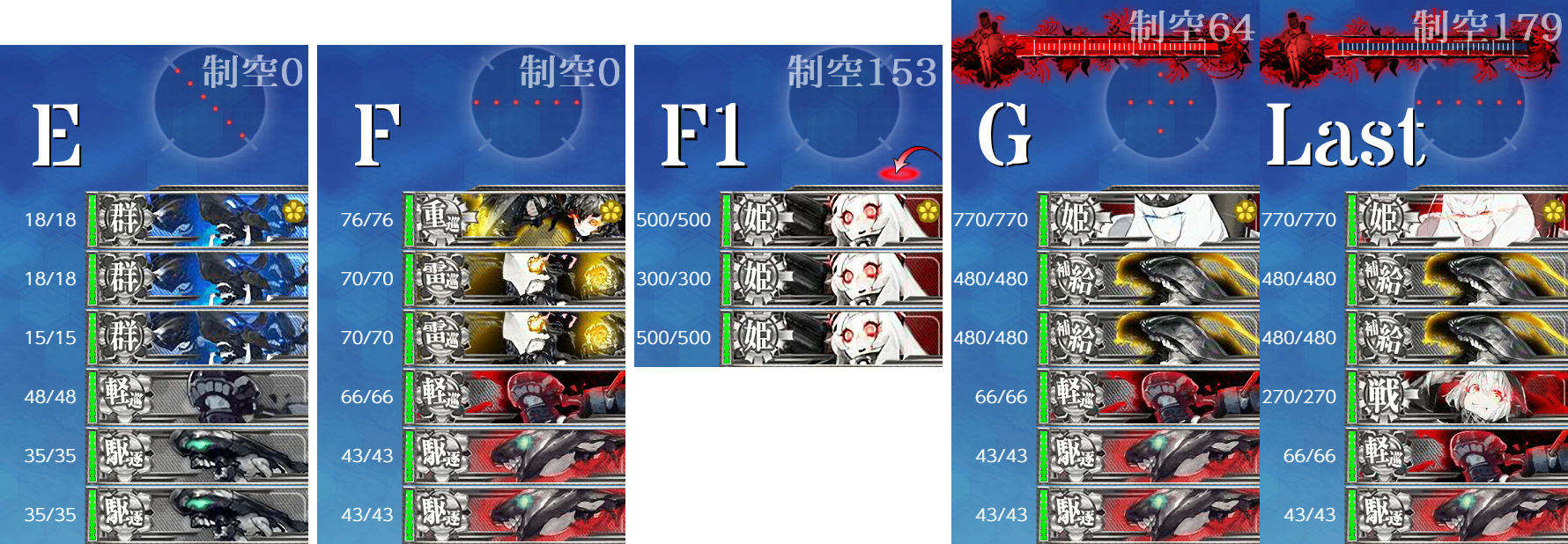 そして最終形態は"レ級"が増えることでこちらが被弾しやすくなりますし旗艦を護る盾にもなるので旗艦撃破難易度up。