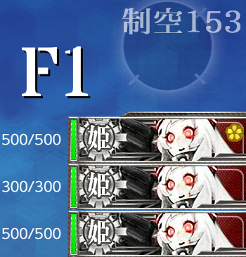 [警戒陣]ボスでも警戒陣を使う偶にあるアレ。"北方水姫"はともかく随伴艦は強くないので基地航空隊2部隊分でそこそこ落とせますしあとは夜戦で魚雷CIに期待するだけ。そんな感じで削り段階は撃破出来るかはともかくすんなりいくはず。