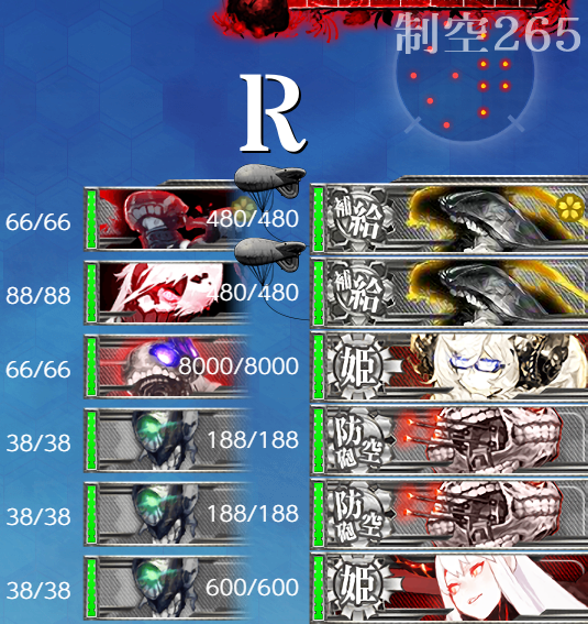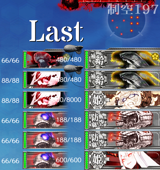 - 制空値 2戦目(L)で航空優勢が取れる制空値225↑が目安かな?ボス戦は基地航空隊の削りもあるので余裕。