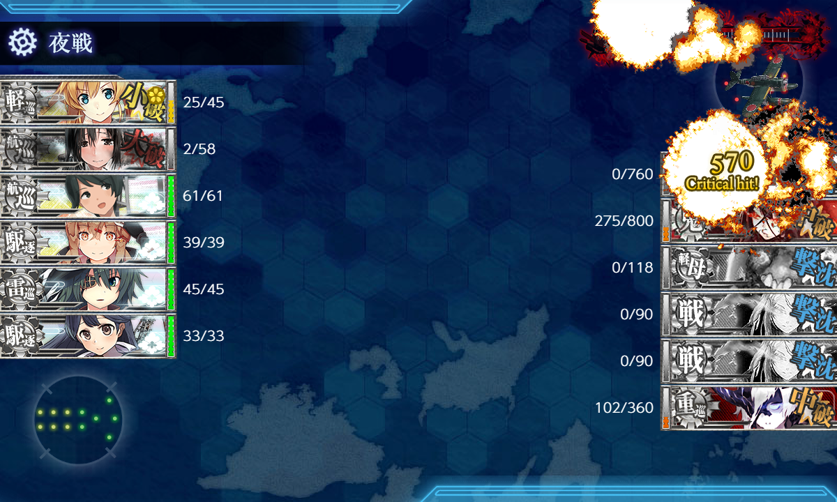最後は「潮」の魚雷CIで570damage叩き込んで終わり。