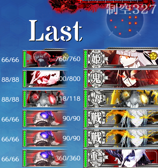 最終形態も体感としては大きく変わらないかな?必要な制空値が上がったり"条約外巡洋艦水姫-壊"を撃破しないといけないので決して楽勝ではないですが到達して特殊砲撃が発動すれば少なくとも夜戦で3択、うまくいけば2択の状況は作りやすいのであとは"条約外巡洋艦水姫-壊"、"戦艦水鬼改-壊"を撃破出来る夜戦火力を叩き込むだけという印象。