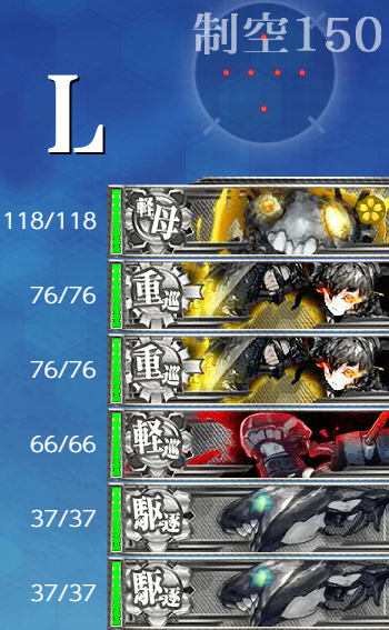 - 制空値 第一艦隊の制空値は2戦目(L)で航空優勢↑が取れる制空値225↑は稼ぎたい。