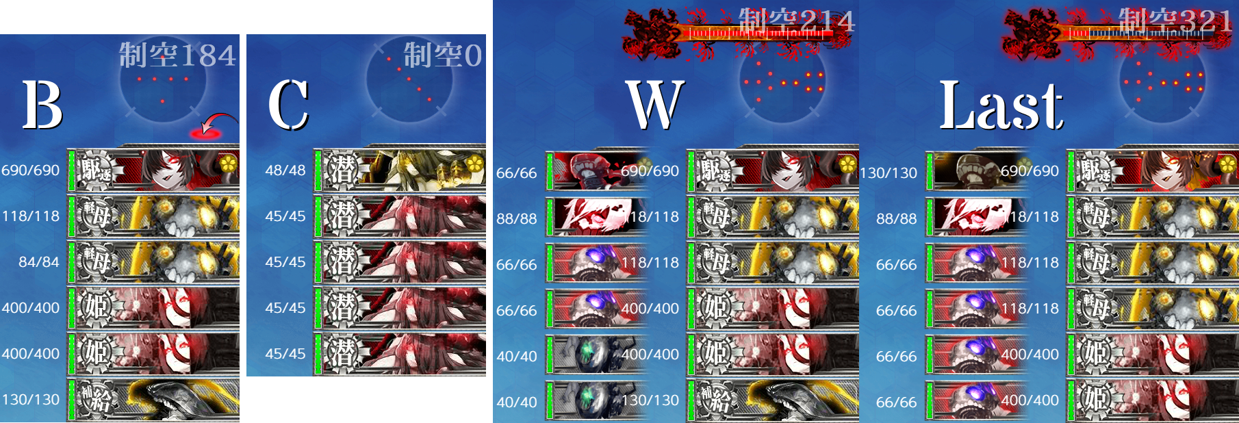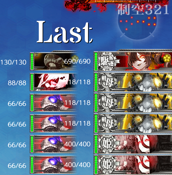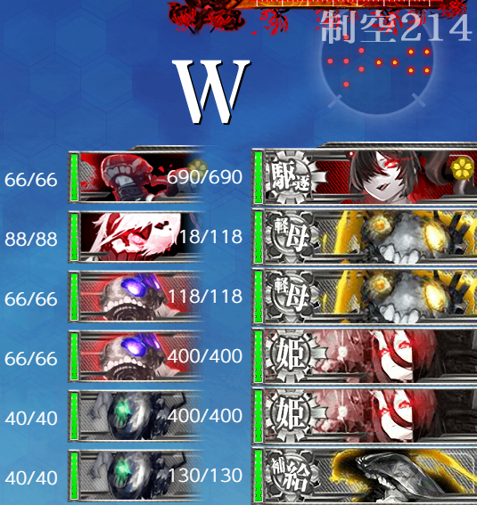 - 制空値 基地航空隊の削りと合わせて出撃時に制空値310↑もあればボス(W)で航空優勢が取れるかな?