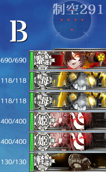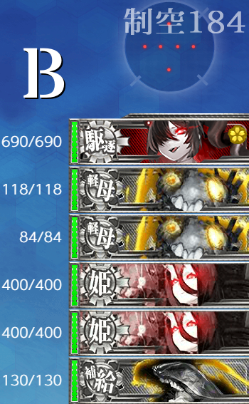 [第四陣形]強いのは"ラ級β"ぐらいで"戦艦棲姫"は基地航空隊で落ちることもあるので問題なく削れるはず。