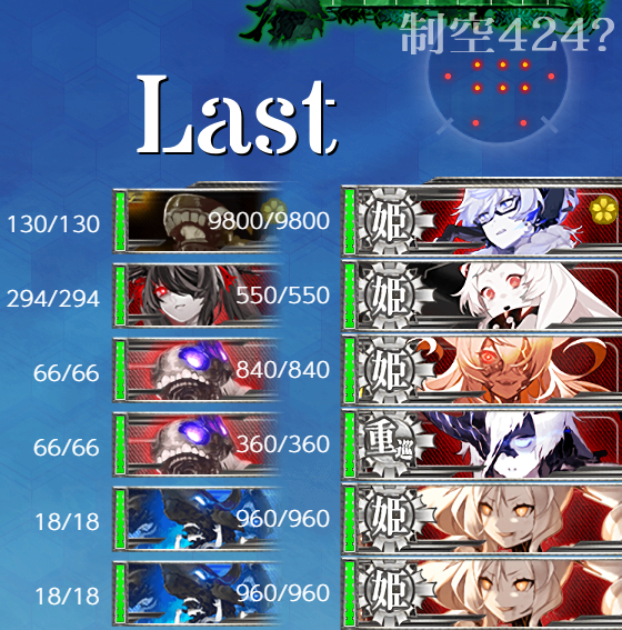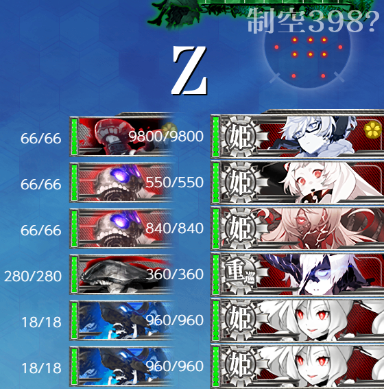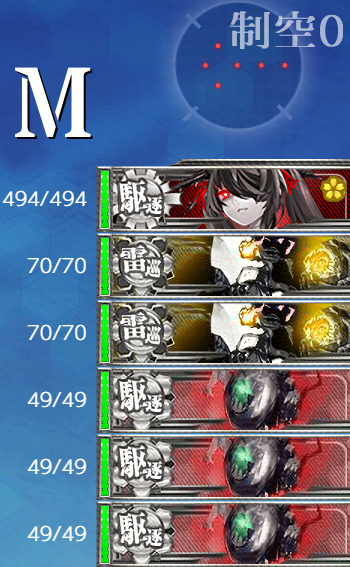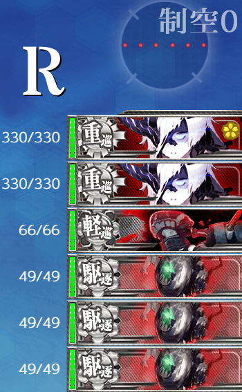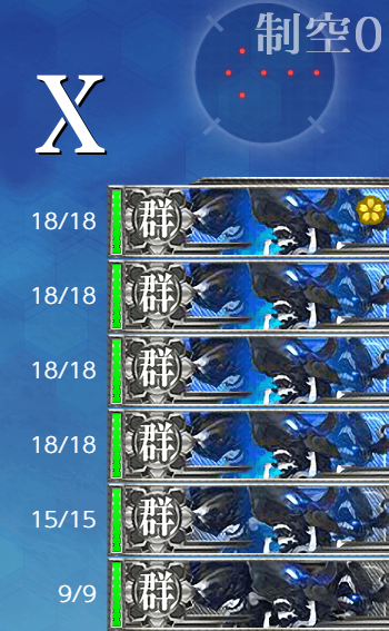 空襲戦を2度通ることになるので一応"空母"を編成して航空拮抗まで制空値を稼ぎました。