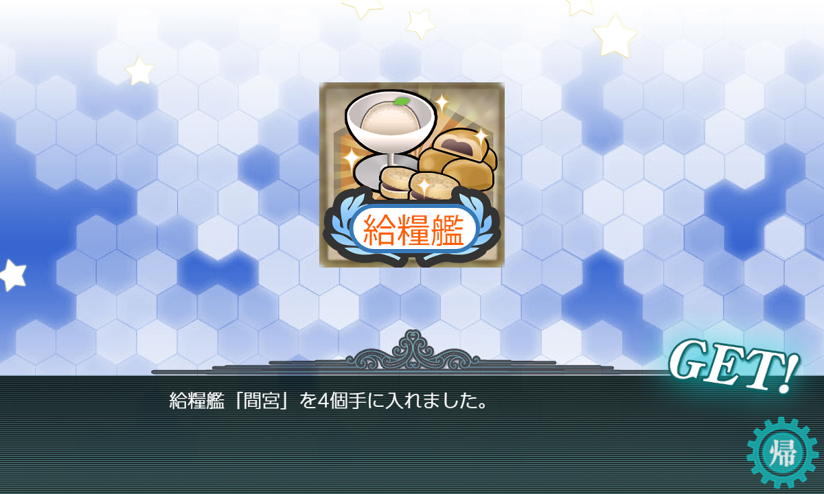 選択は「海外艦最新技術×2」、「緊急修理資材×5」。【甲】は「海色リボン」の有無が大きいかなー?