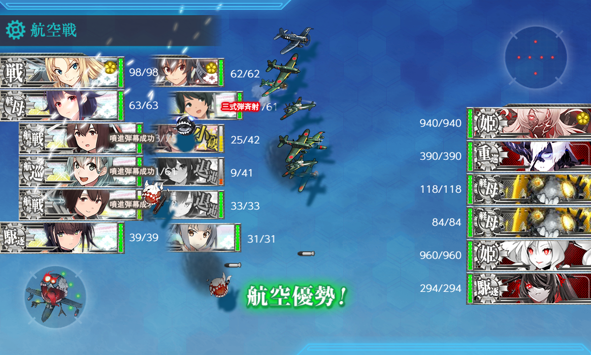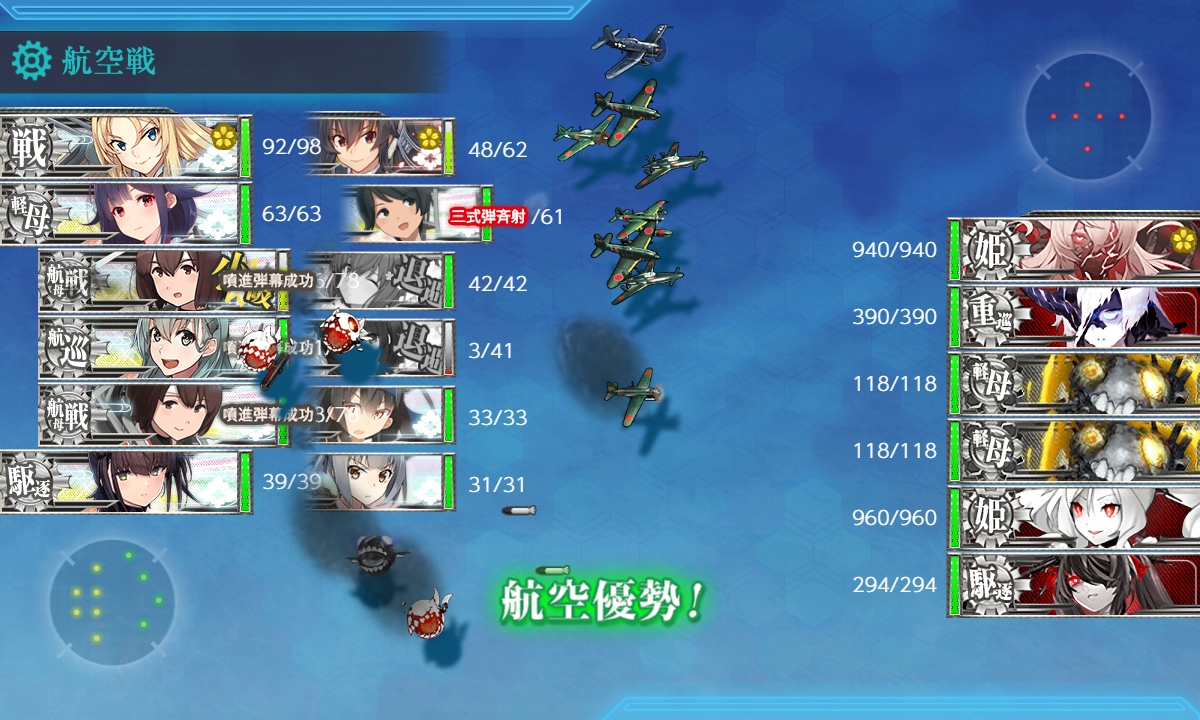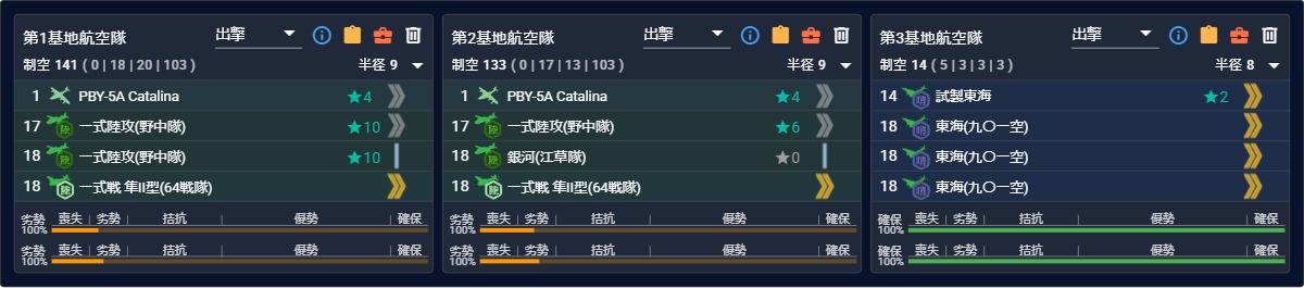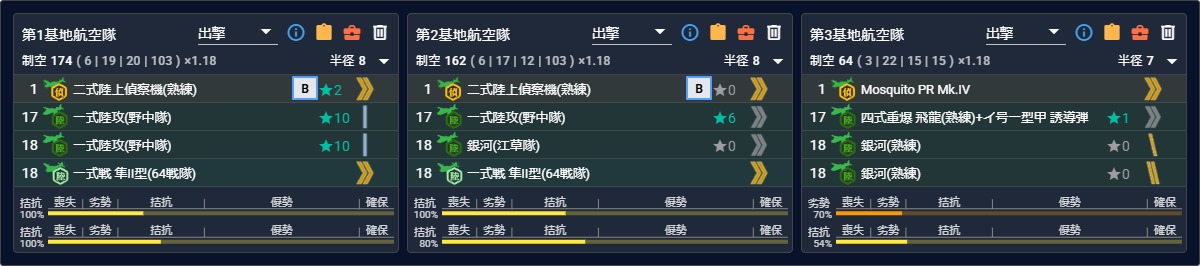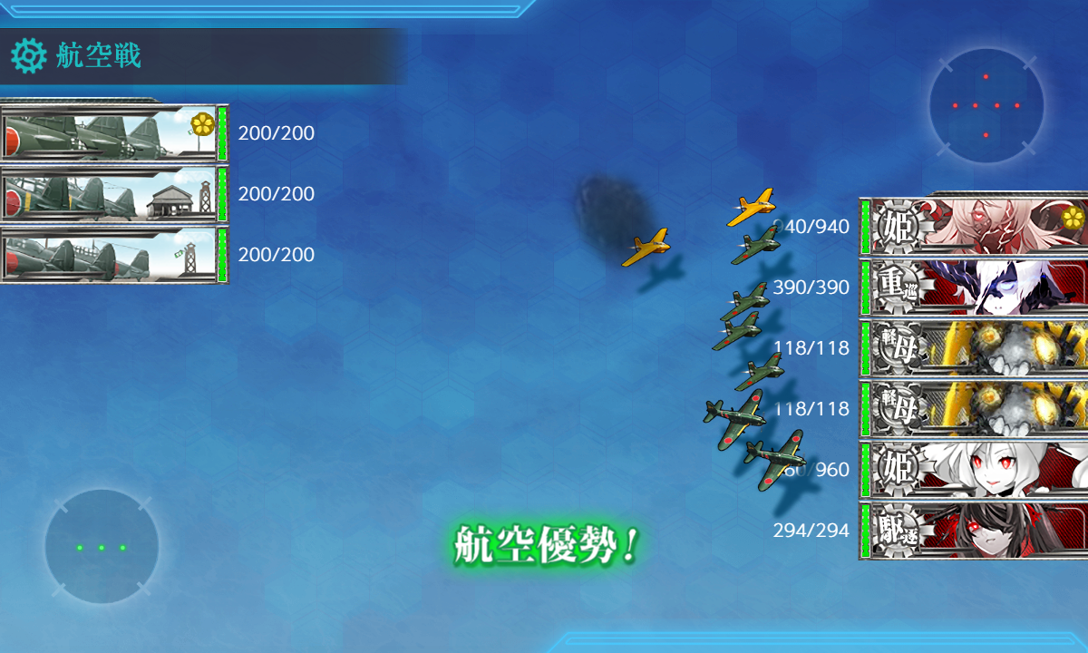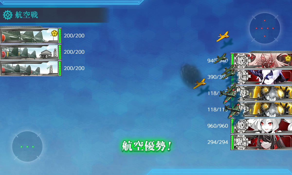 - [空襲]航空優勢↑×2:[礼号作戦部隊][第四航空戦隊][第二遊撃部隊]