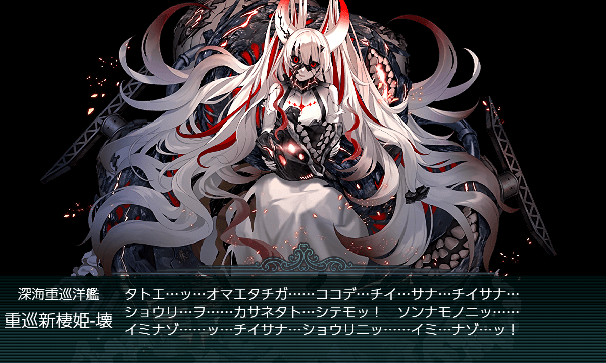 - "重巡新棲姫"を"重巡新棲姫-壊"に。(≒ゲージを5150HP↑削る。):[礼号作戦部隊][第四航空戦隊][第二遊撃部隊]