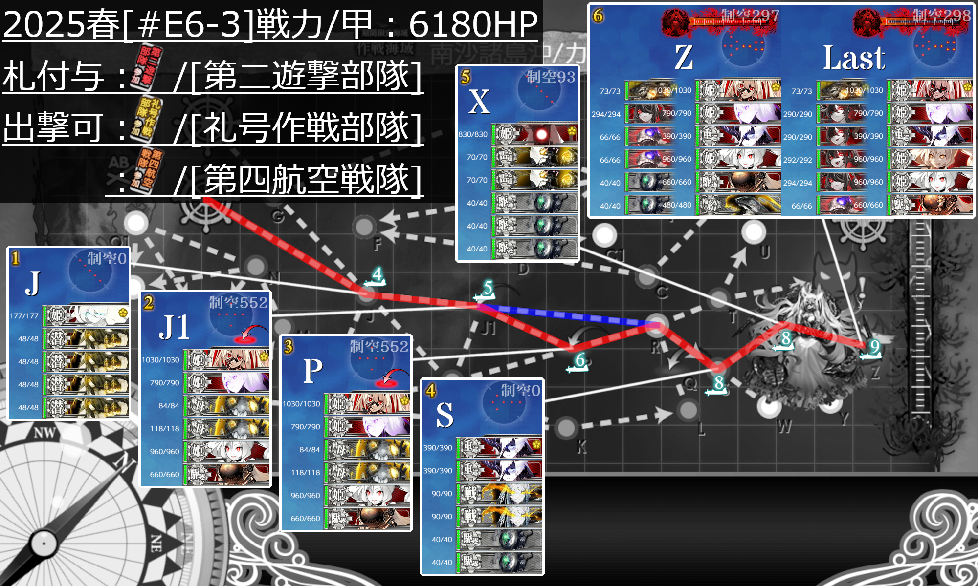 - Oマス(#E6-1boss)S勝利×2:[礼号作戦部隊][第四航空戦隊][第二遊撃部隊]