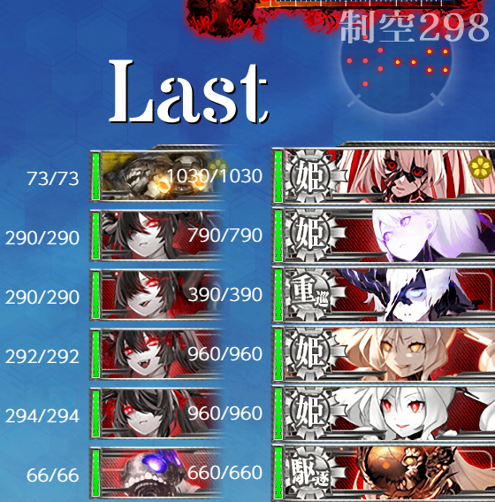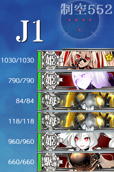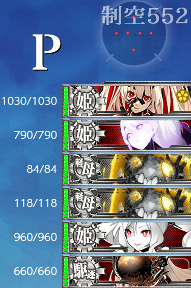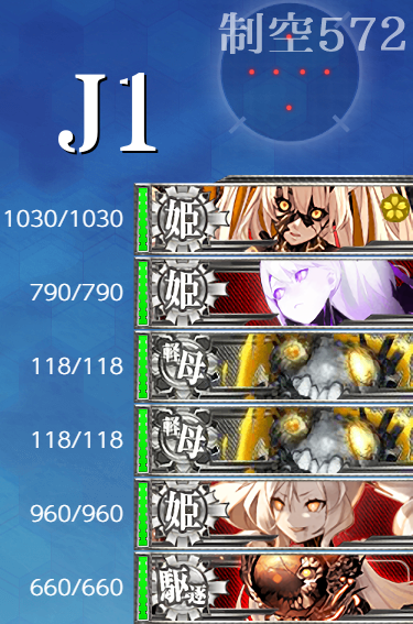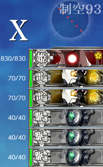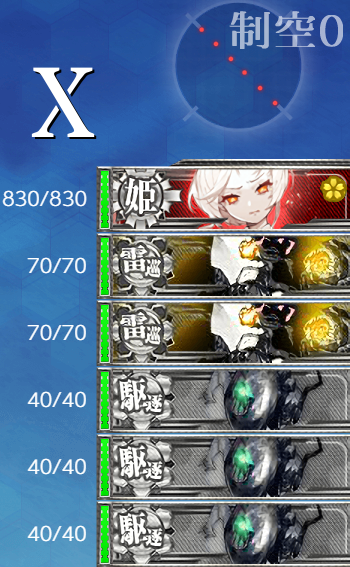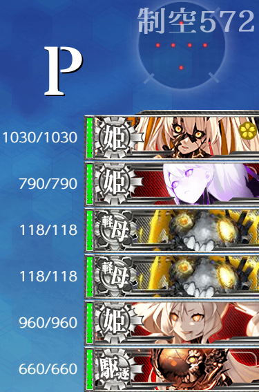 - 制空値 最終形態でもボスの制空値は大きく変わらないので"軽空"に[艦戦]×4と基地航空隊の削りで航空優勢が取れるはず。