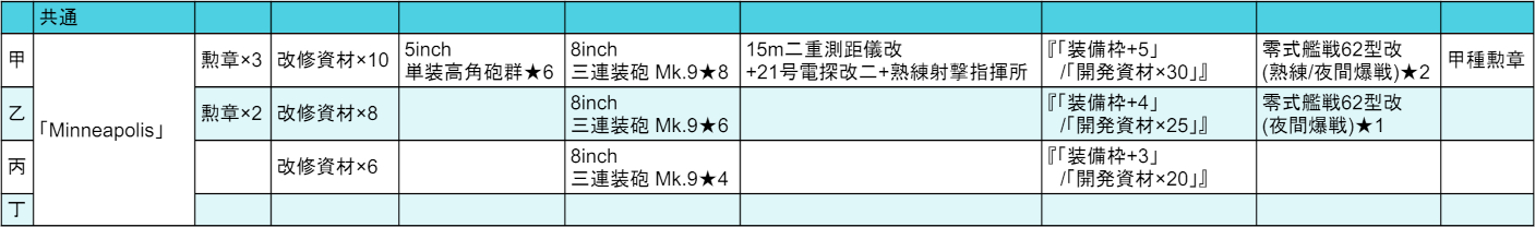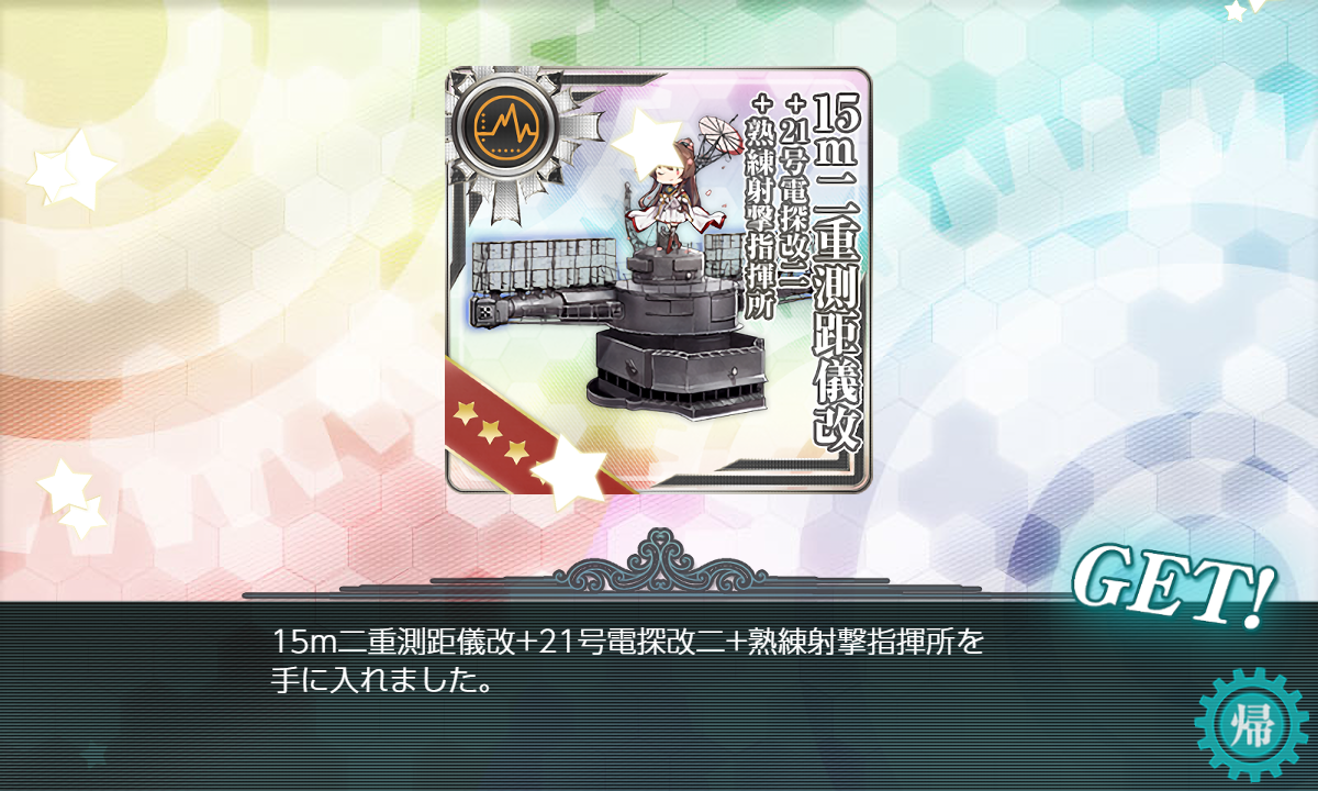 選択は「装備枠+5」。[15m二重測距儀改+21号電探改二+熟練射撃指揮所]は支援艦隊にも使えますしもう何個かあっても良い装備ではありますが一応作ろうと思えば作れますし[5inch 単装高角砲群]もまず使わない装備なので正直甲は目指すものでは?[5inch 単装高角砲群]は[8inch 三連装砲 Mk.9]共々なにかありそうな気もしますが手持ちで充分ですし。
