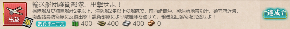 出撃任務はこんな感じでした。鎮守府海域(1-*)指定なのでどうとでもなりますが"揚陸艦"次第では困惑するかも?