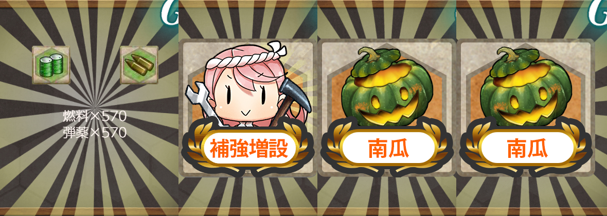 「南瓜」任務2個目はこんな感じでした。まだまだ特筆する点はないかな?指定艦がちょっと厄介かも?