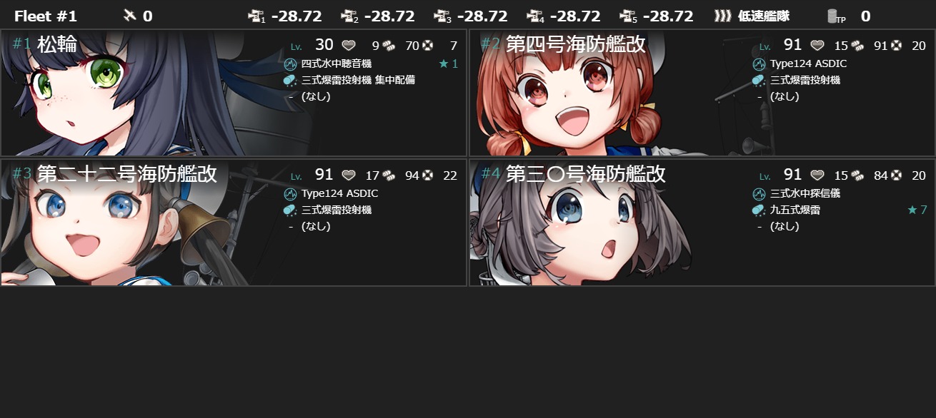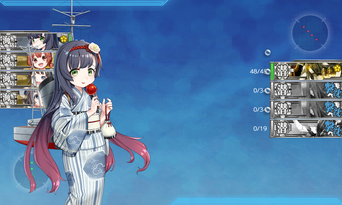- [「迅鯨、長鯨、朝日、伊201、伊47、村雨、巻波、丁型海防艦」3]+[自由枠3]で