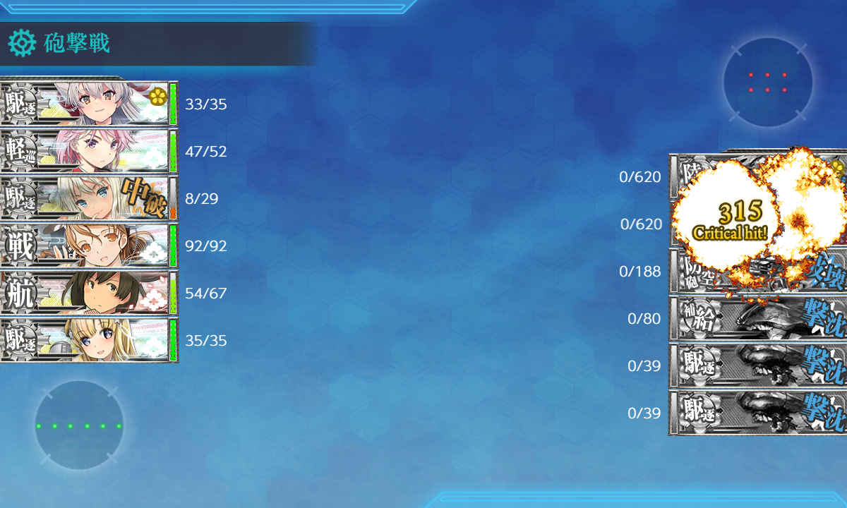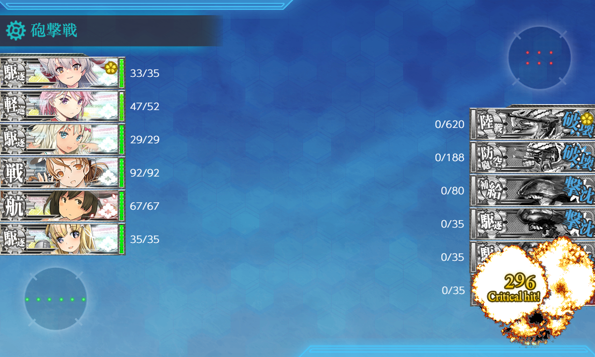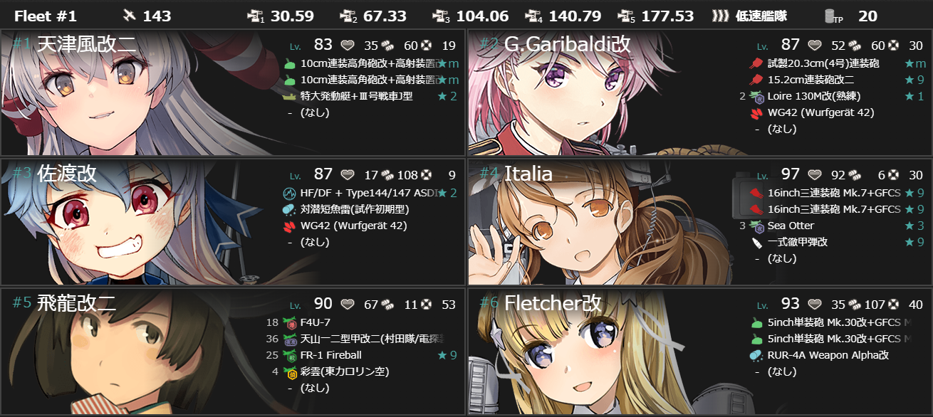 2025年10月30日 21:00 2025秋イベ #E1甲[海域拡張]【ヴェーザー演習作戦】 カテゴリ:onlineGAME艦隊これくしょん コメント数:コメント(2) #E1甲海域拡張さて2025秋イベントが開幕しましたがまずは恒例の海域拡張から(。・Д・)ゞ DマスS勝利:[改R4計画艦隊]EマスS勝利:[改R4計画艦隊]IマスS勝利:[改R4計画艦隊]NマスS勝利:[改R4計画艦隊]現時点での最奥マスへ行くだけなので特に難しい点はないかな? [#E1]はずっと同じ[改R4計画艦隊]札なので[#E1-1]や[#E1-2]の本攻略に向けて艦娘を選出すると吉。 手順1手順2手順3海域拡張←Click切替 DマスS勝利 まずは『DマスS勝利』。この√は低速混在が条件っぽいので先を見据えて低速艦を誰にするか考えると吉。 編成(通常艦隊)/お札[改R4計画艦隊]▼Click 編成[#E1-1]までは色々な条件が緩そうなのでサブ艦を適当に。 低速艦は「佐渡」にしましたが"戦艦"を"航戦"にするとかサブがいるなら「Samuel B.Roberts」でも良さそう。 私は[#E1-2]を[正空1駆逐5海防1]で攻略しようと予定しているので"海防"にしてますが[航戦1駆逐6]でも良さそうなのでお好みで。ただ後者の編成にする場合この海域拡張で別の高速"戦艦"を編成or"戦艦"なし等のアレンジが必要。 「G.Garibaldi」は特に重要ではないので欧州艦が少ない場合は適当な日本"軽巡"でも可。サブ艦を適当に。 制空値制空値を持つ敵はいないので何でもok。 お札[改R4計画艦隊] サブ「天津風」「G.Garibaldi」「Italia」「飛龍」「Fletcher」 基地航空隊 第一航空隊:【防空】。 第二航空隊:【Dマス】に集中。必要行動半径は【2】 基地航空隊を送らなくても何とかなりそうですが陸上型深海棲艦もいるので一応。 E,IマスS勝利 次は『E,IマスS勝利』。ほぼ手順1と同じですがEマス到達の条件に高速統一(+軽巡?)があるっぽいのでちょっと変更。 編成(通常艦隊)/お札[改R4計画艦隊]▼Click 編成手順1とほぼ一緒で「佐渡」→「Grecale」にしただけ。 この手順では"潜水艦"と遭遇しないので「Fletcher」にも[WG42(Wurfgerät 42)]を載せても良いかも。 あとは手順1を"航戦"で調整した場合はEマスに行くときだけ高速化すればそれでもok。他は低速混在でも大丈夫っぽい。 制空値制空値を持つ敵はいないので何でもok。 お札[改R4計画艦隊] サブ「天津風」「G.Garibaldi」「Grecale」「Italia」「飛龍」「Fletcher」 基地航空隊 第一航空隊:【防空】。 第二航空隊:【E,Iマス】に集中。必要行動半径は【2,3】 手順1と同じものをそれぞれの出撃で目的のマスに。 NマスS勝利 最後は『NマスS勝利』。ここは陸上型ではなく強化"PT小鬼群"なので装備をそっち対策に。 編成(通常艦隊)/お札[改R4計画艦隊]▼Click 編成手順2から編成面子自体は一緒で装備を対"PT小鬼群"に。 制空値制空値を持つ敵はいないので何でもok。 お札[改R4計画艦隊] サブ「天津風」「G.Garibaldi」「Grecale」「Italia」「飛龍」「Fletcher」 基地航空隊 第一航空隊:【防空】。 第二航空隊:【Nマス】に集中。必要行動半径は【6】 海域拡張これでボスマスとそこに続く航路が出現するので[#E1-1]本攻略開始になります(。・Д・)ゞ タグ :#艦これ#艦これイベント#2025秋イベント#前段作戦#海域拡張 艦隊これくしょん(艦これ)ランキングに参加しています。クリックして頂けると励みになります(。・Д・)ゞ 「onlineGAME」カテゴリの最新記事 コメント コメント一覧 (2) 1. 丁攻略している者 2025年10月31日 09:14 いつも大変お世話になっております。 手順3『NマスS勝利』のConcept 基地航空隊ですが、 「第二航空隊:【Dマス】に集中。必要行動半径は【2】」は誤記ではないでしょうか!? 引き続き攻略情報いただけると助かります。 どうか頑張って下さい。 0 naru がしました 2. naru 2025年11月07日 01:00 >>1 あー本当ですね。コピペしてそのままだったようです。 修正しておきます。コメントありがとうございます(。・Д・)ゞ 0 naru がしました コメントフォーム 名前 コメント 記事の評価 リセット リセット 顔 星 情報を記憶 コメントを投稿する 10/29(水),30(木)アップデートまとめ【逆転!ナルヴィク攻防戦】2025秋イベ #E1-1甲[vs軽巡ム級]【ヴェーザー演習作戦】