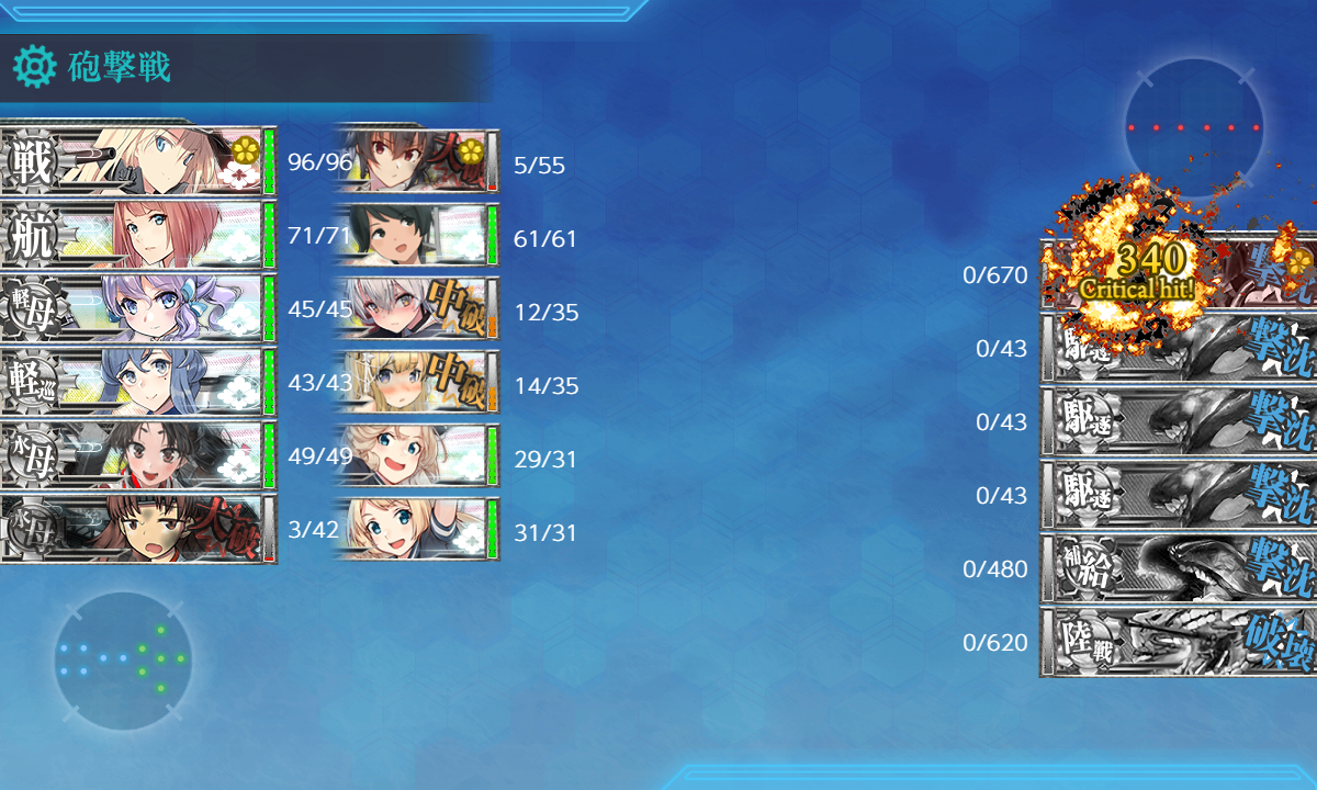 また、千代田を正空にし日進の部分を駆逐に変更してもOを経由するので、Oマスは正空2だと経由する模様です。