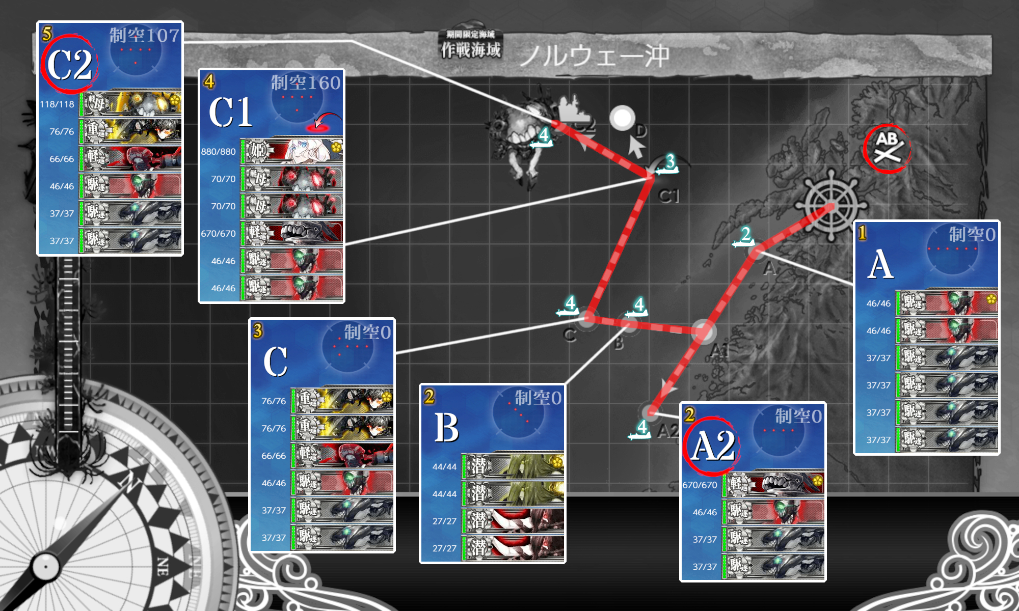 『A2,C2マスS勝利×2+[空襲]航空優勢↑』。特筆する点なし。