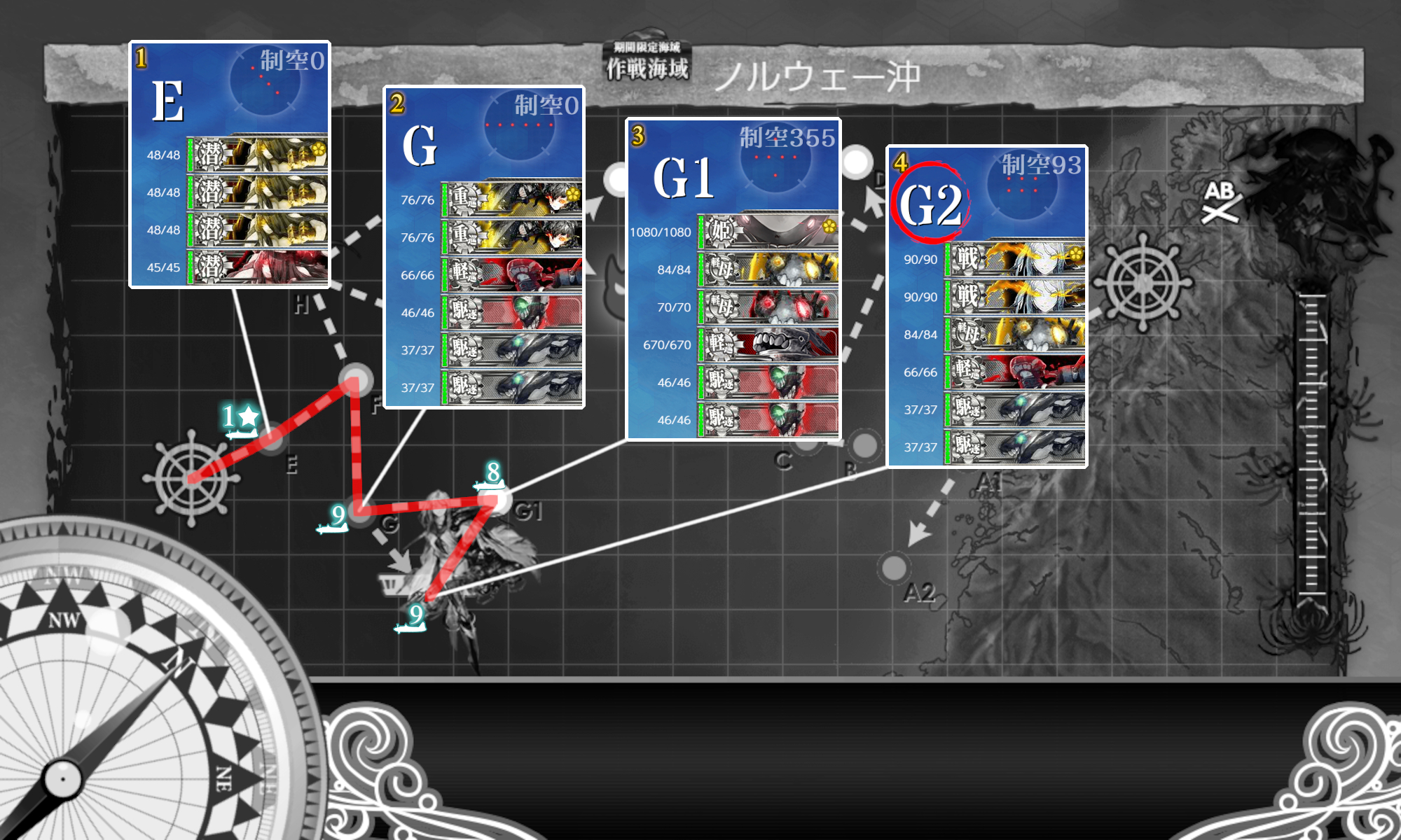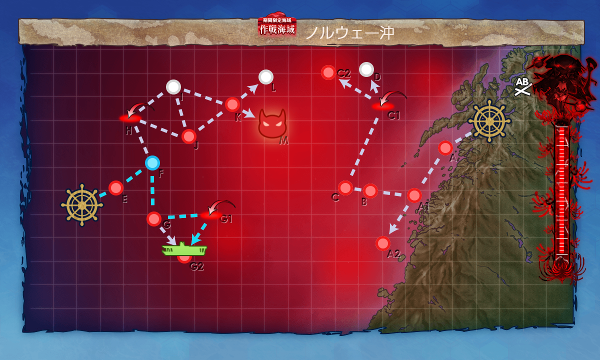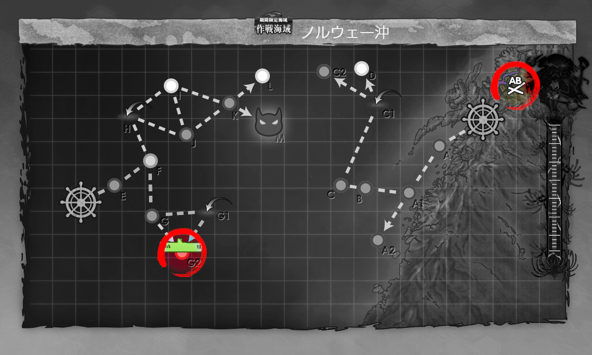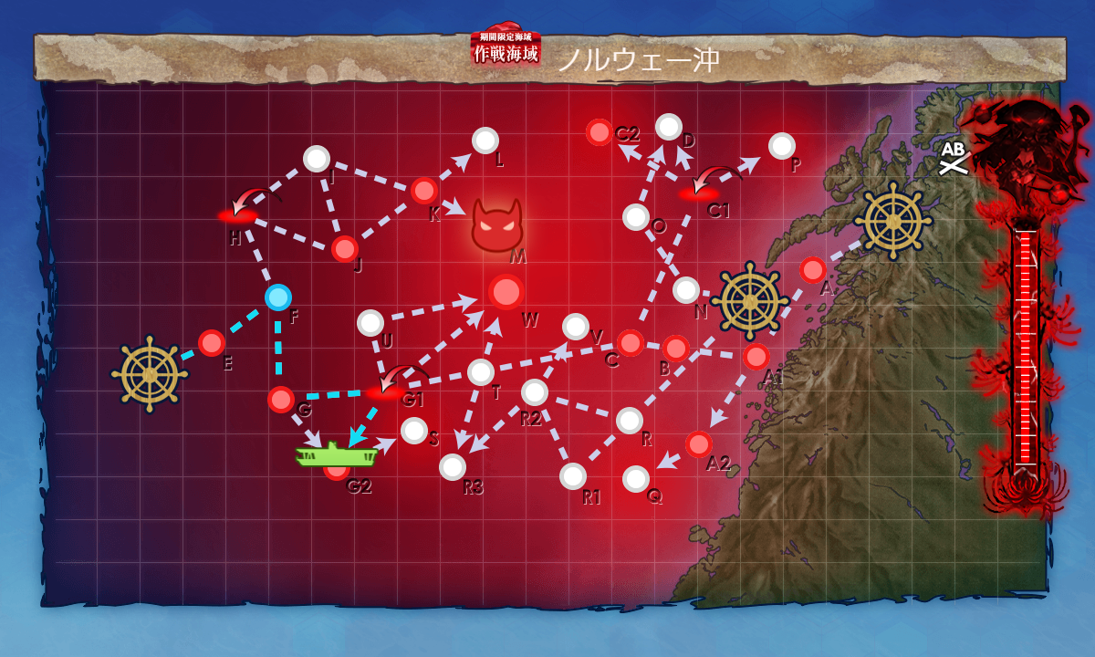 『G2マスS勝利×2+[空襲]航空優勢↑』。恐らく攻略時の編成そのままで能動分岐を変えるだけでok。