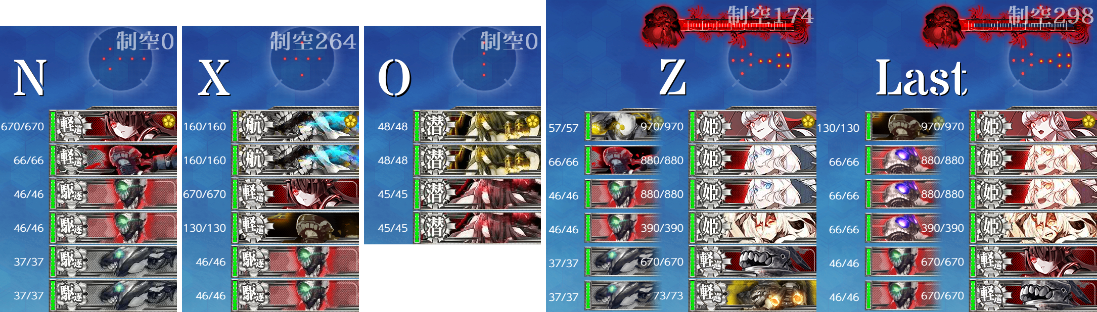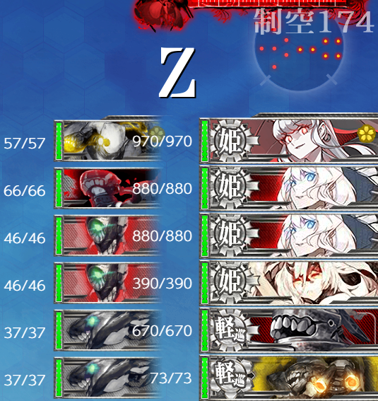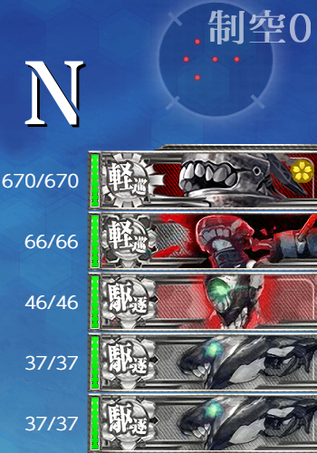 [第四陣形]"ヲ級改"+"ム級"(+"ヌ級改")編成となかなか怖い。削り段階では基地航空隊を1部隊送れば安定しました。